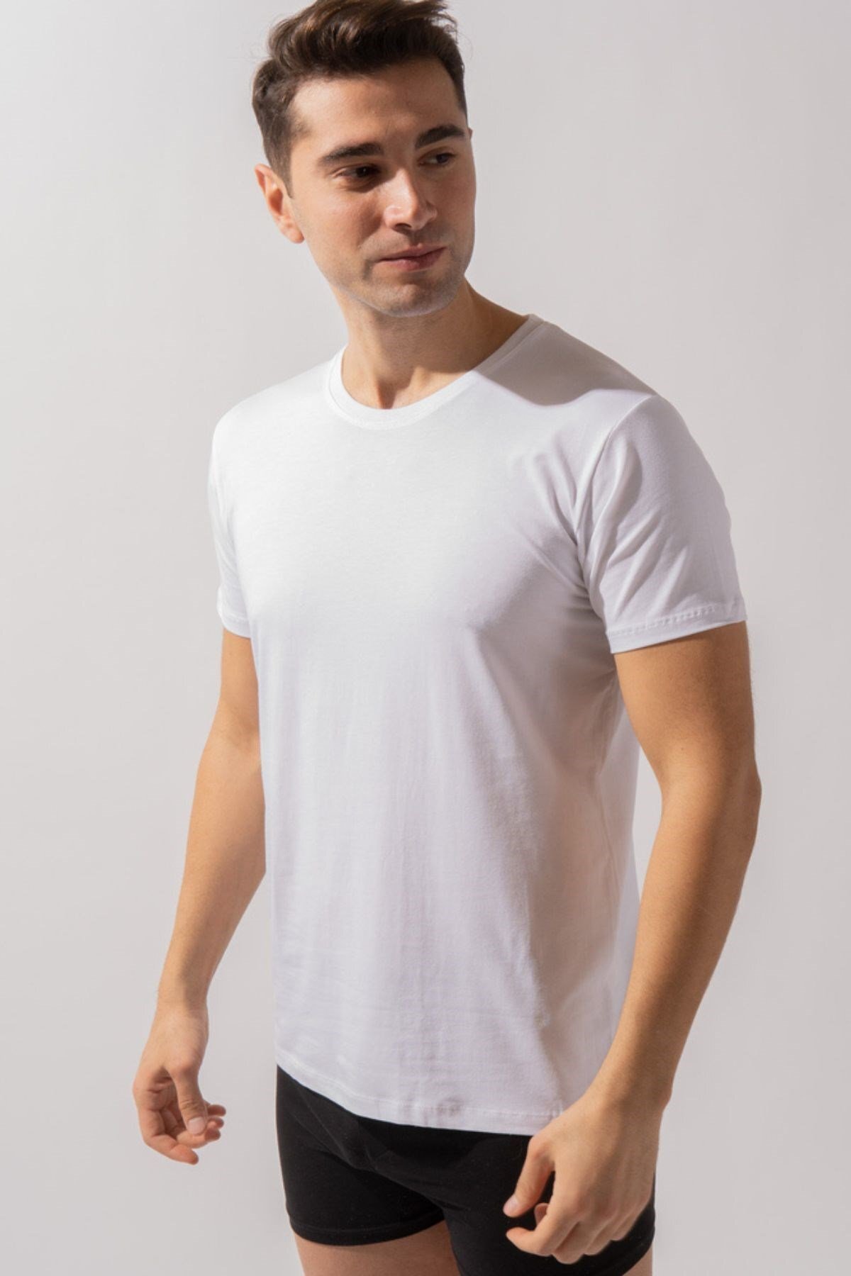 ميزات قميص داخلي رجالي أساسي مشروط برقبة دائرية باللون الأبيض من Katia&Bony