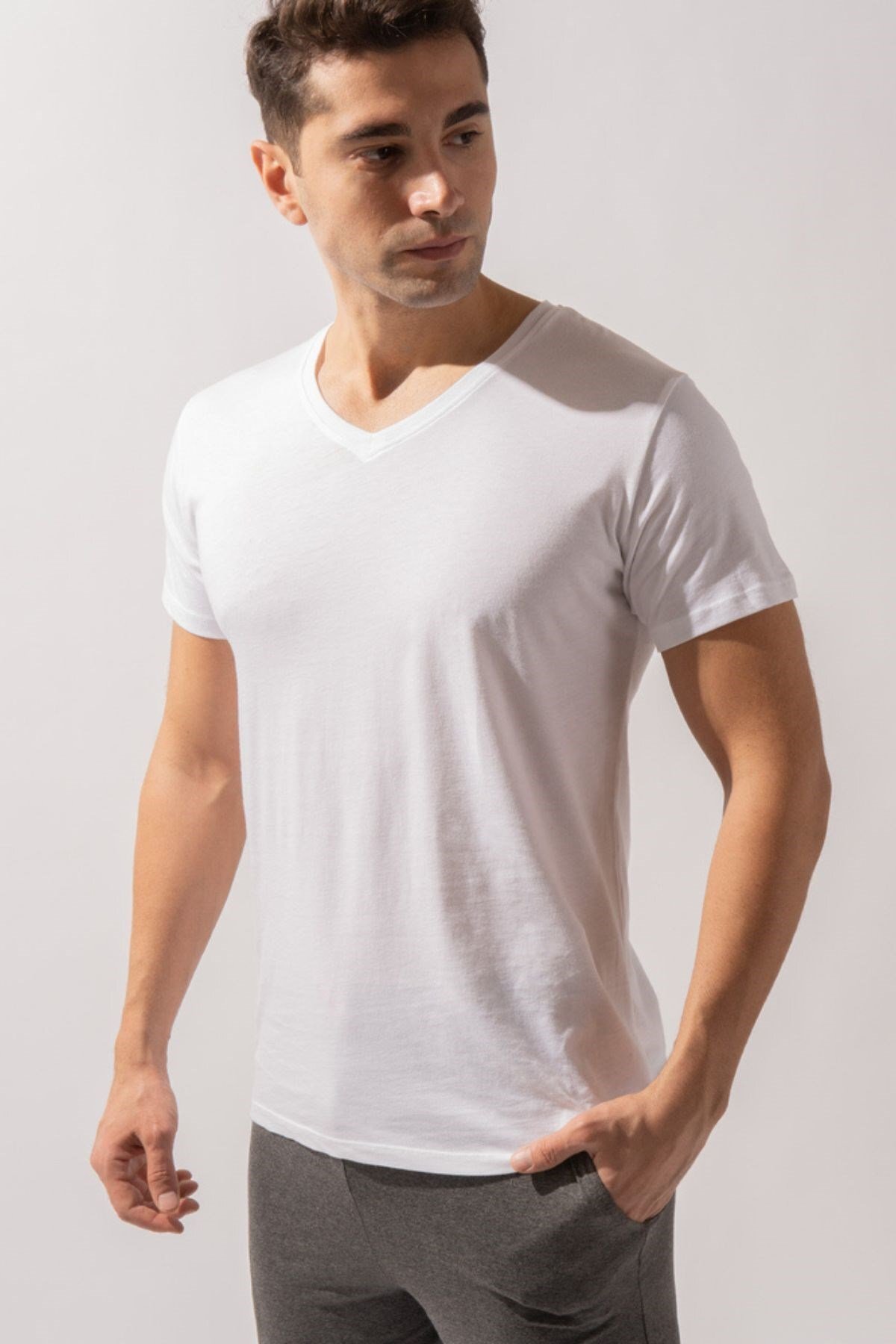 ميزات قميص داخلي رجالي أساسي برقبة على شكل حرف V باللون الأبيض من Katia&Bony