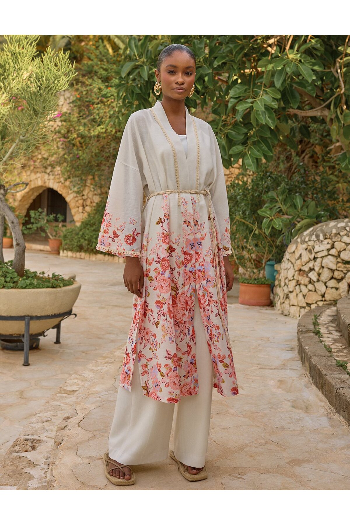 Kayra مجموعة مزدوجة منقوشة بالزهور بلون كريمي