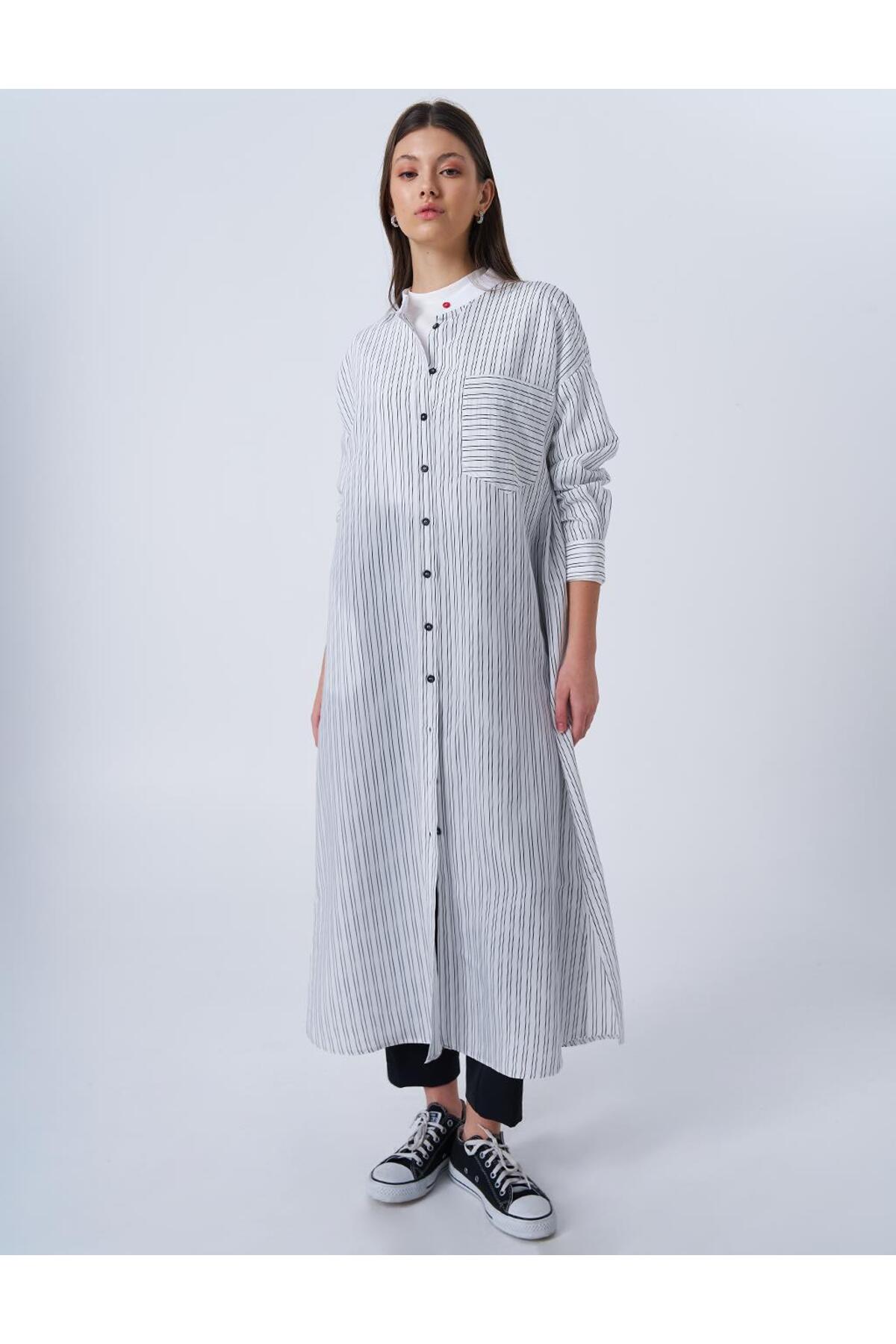 ميزات سترة طويلة بنمط الخط الأبيض البصري من Kayra
