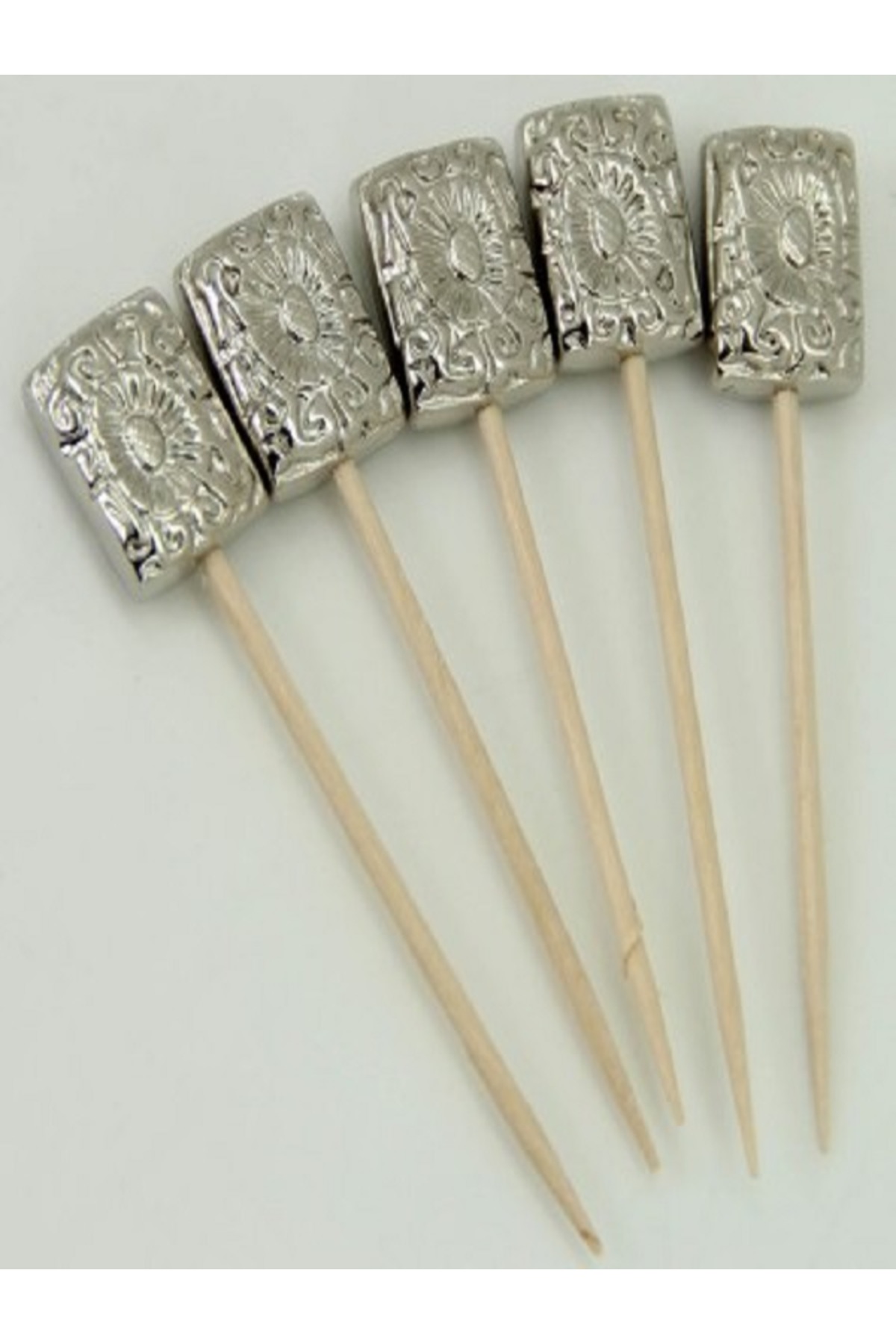 Kazanabil 20 قطعة أعواد أسنان مستطيلة مطرزة بالخرز لتقديم الكوكتيل باللون الفضي