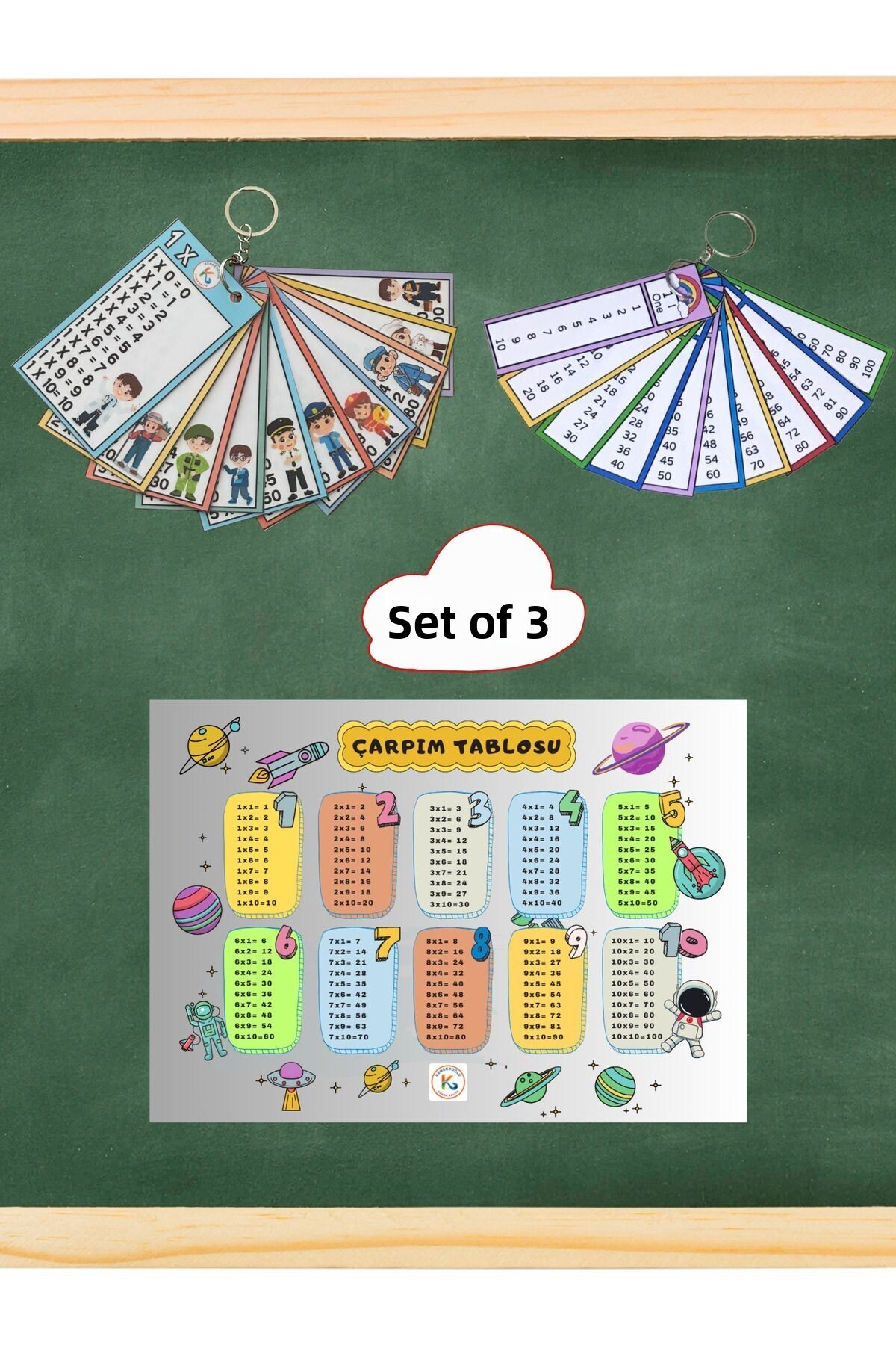 ميزات سلسلة مفاتيح لجدول الضرب تحت عنوان المهن، وجدول الضرب تحت عنوان الفضاء والعد الإيقاعي، مجموعة من 3 من KENGEROĞLU