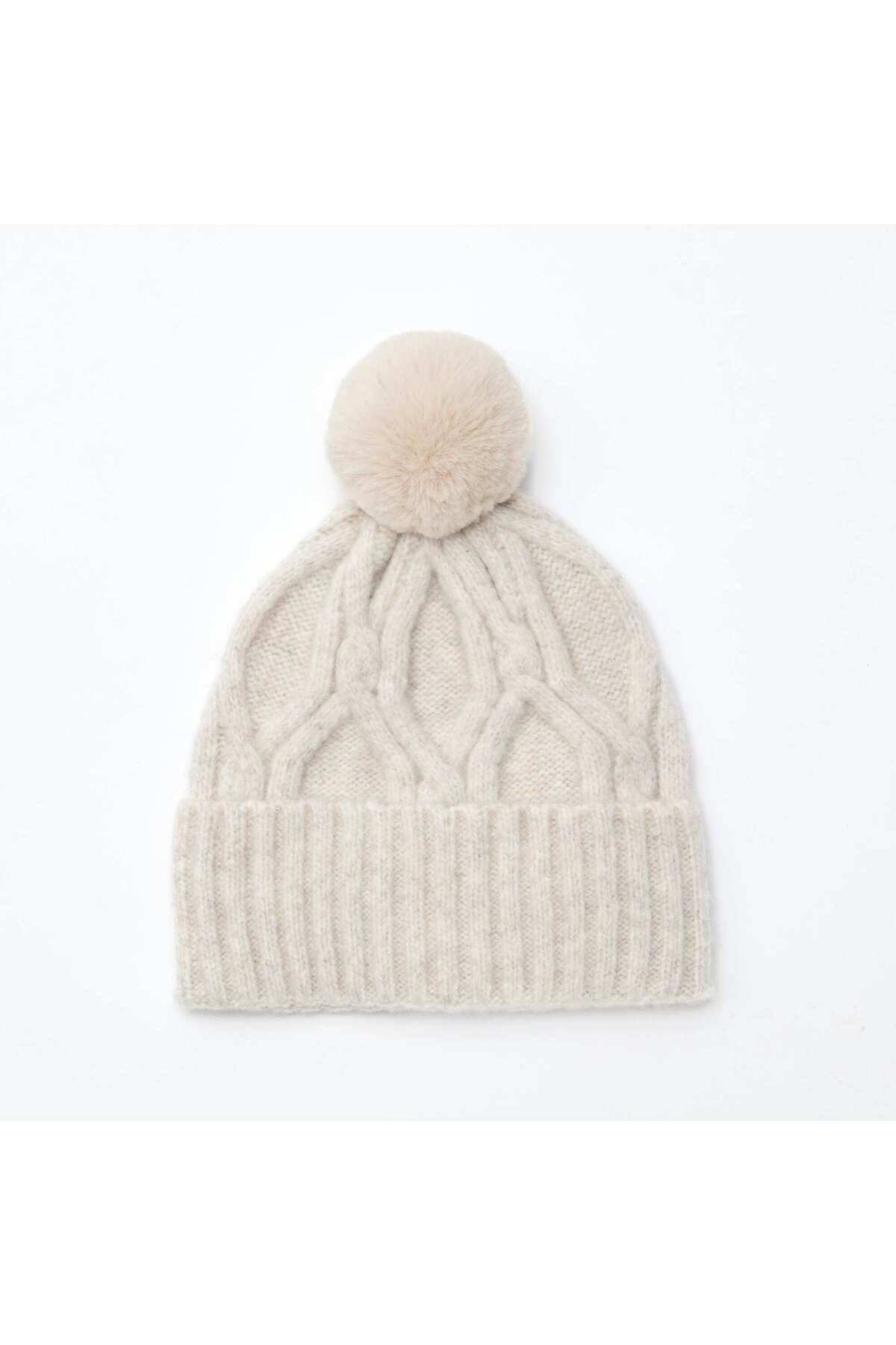KIABI قبعة صوفية مضلعة متينة مزينة بكرة صوفية، لون بيج