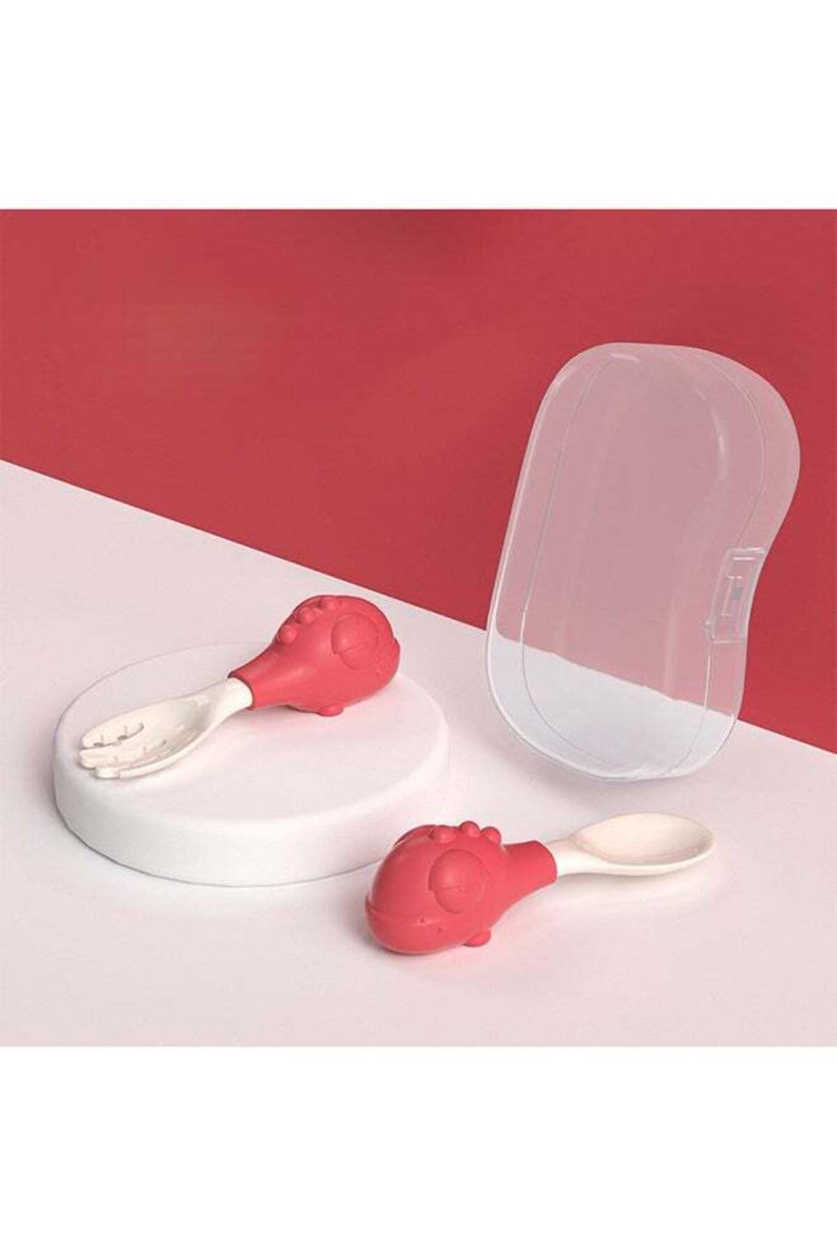 ميزات شوكة وملعقة ديناصور - علبة - أحمر من kiddoz