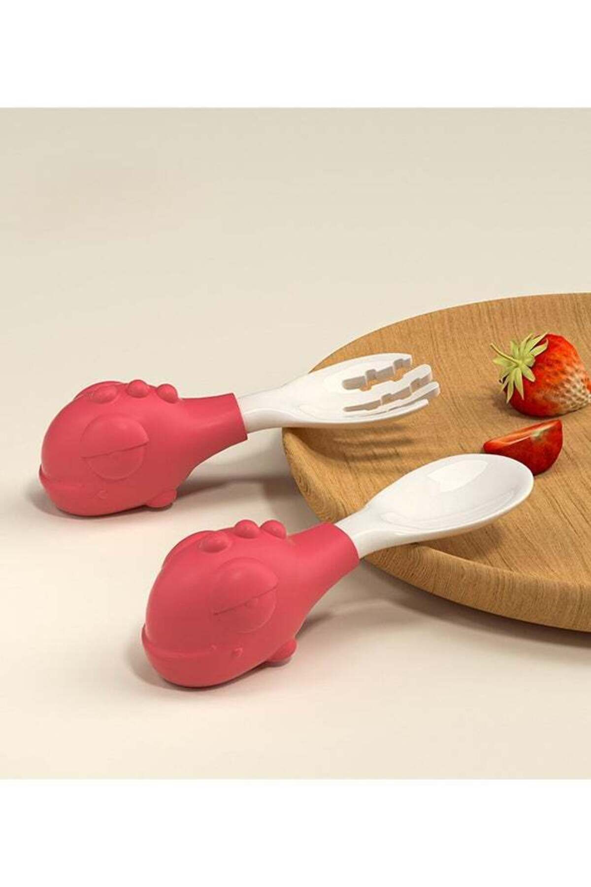 ميزات مجموعة شوكة وملعقة على شكل ديناصور - أحمر من kiddoz