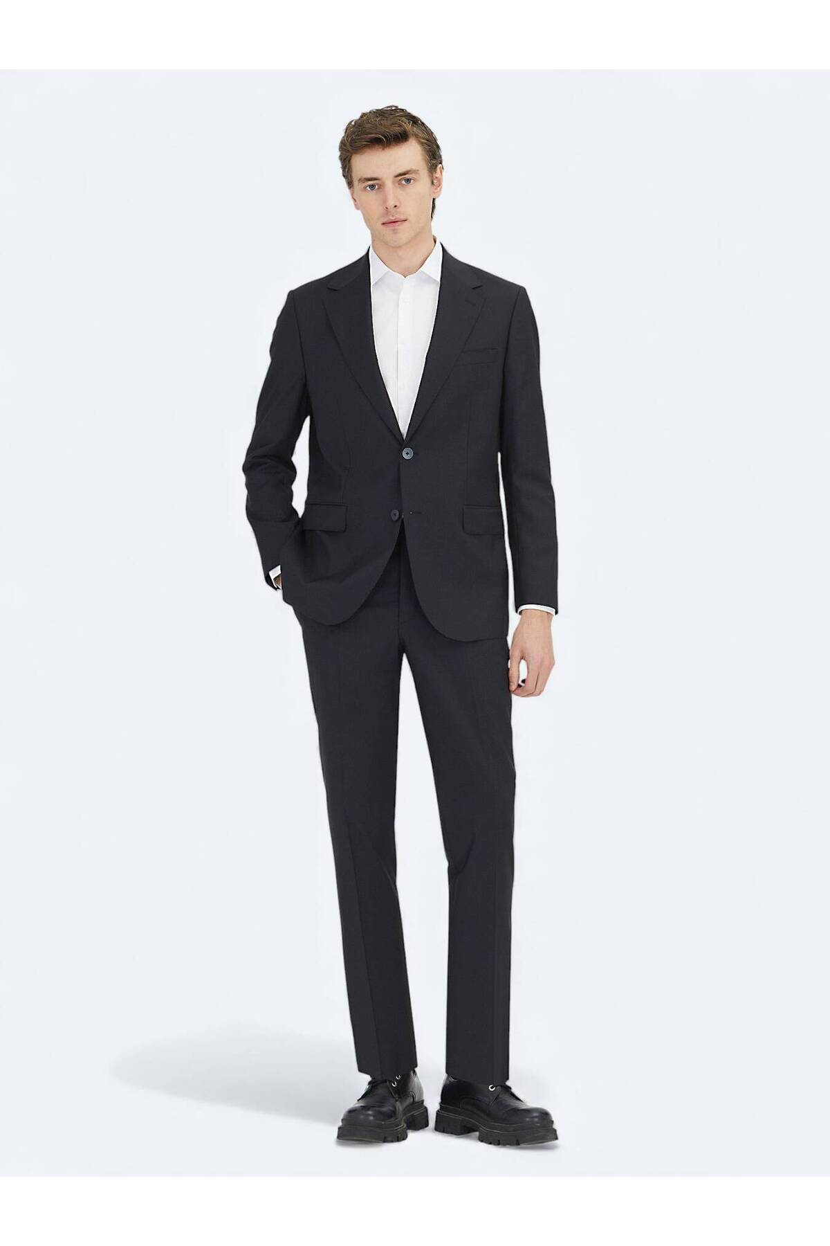 ميزات بدلة سوداء من مزيج الصوف الدقيق من Kip