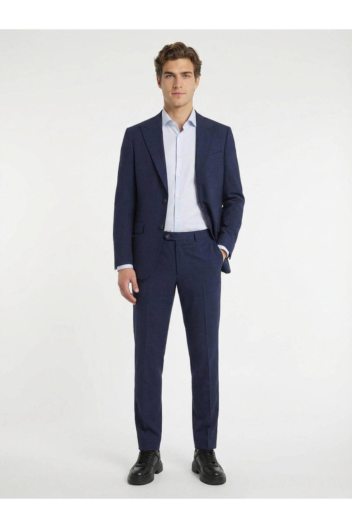 ميزات بدلة زرقاء سادة مصنوعة من الصوف بنسبة 100% من Kip
