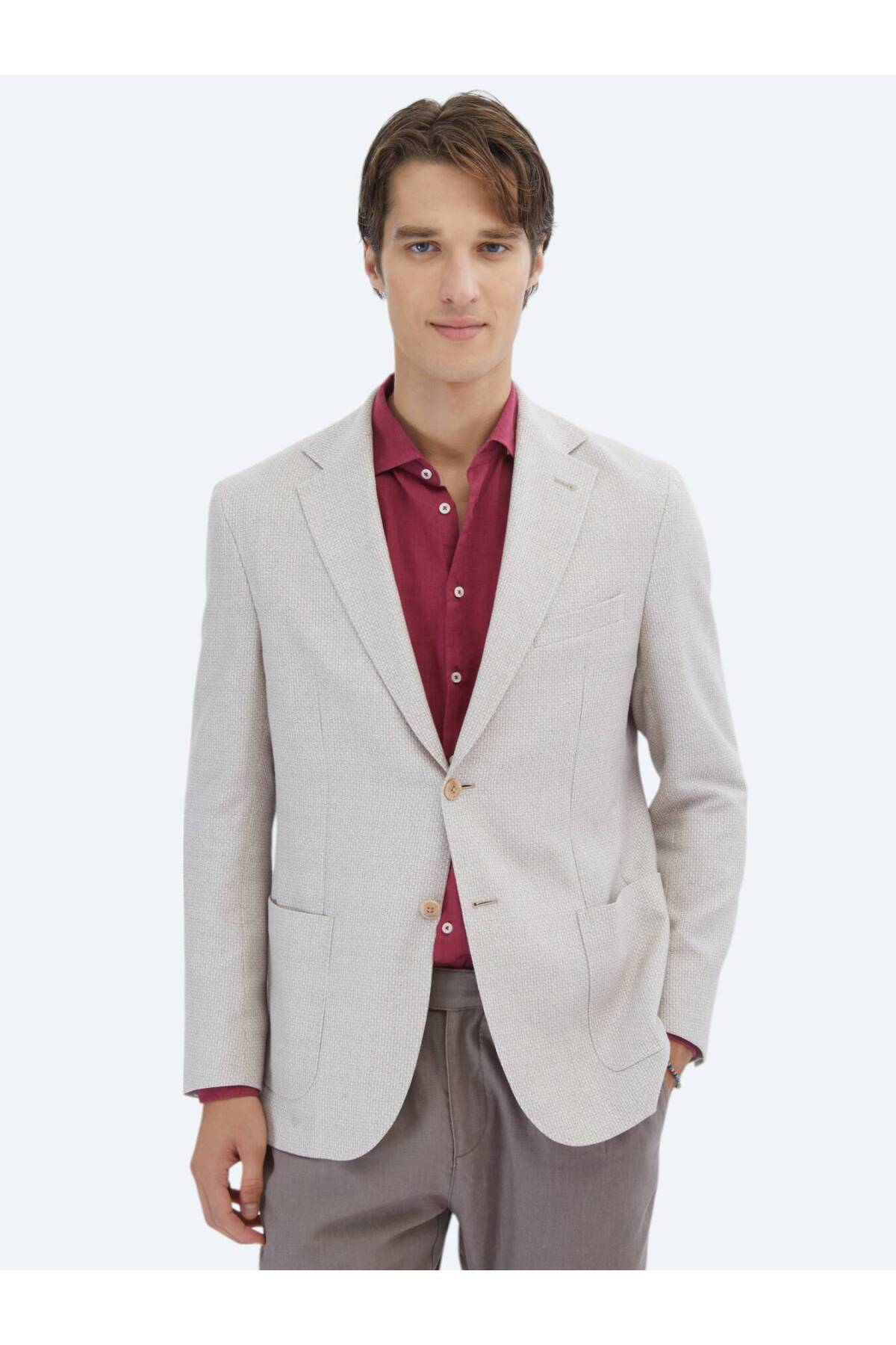 ميزات سترة من مزيج الكتان ذات تصميم عصري بنقشة السلمون من Kip