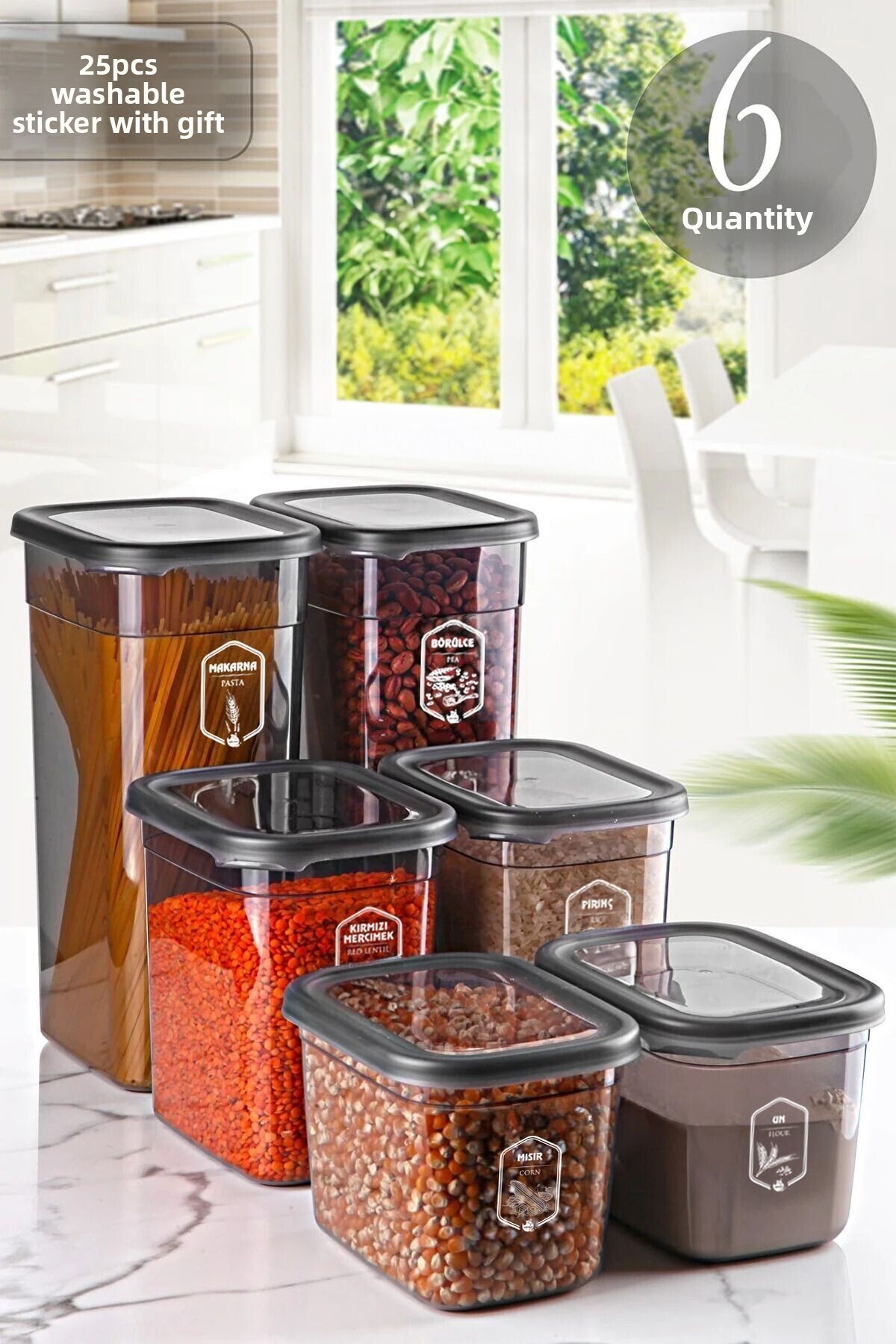 ميزات مجموعة حاويات تخزين مستطيلة من أنثراسايت مولي مكونة من 6 قطع - مجموعة قابلة للتعديل من Kitchen Life