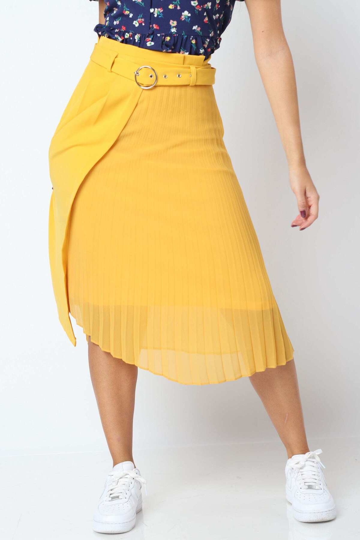 Kitschen تنورة متوسطة الطول مطوية نصف سادة