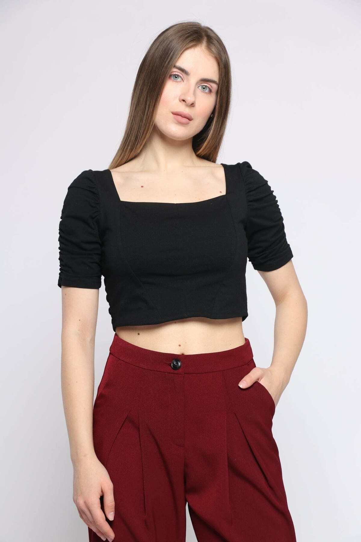 ميزات بلوزة قصيرة مقصوصة برقبة مربعة من Kitschen