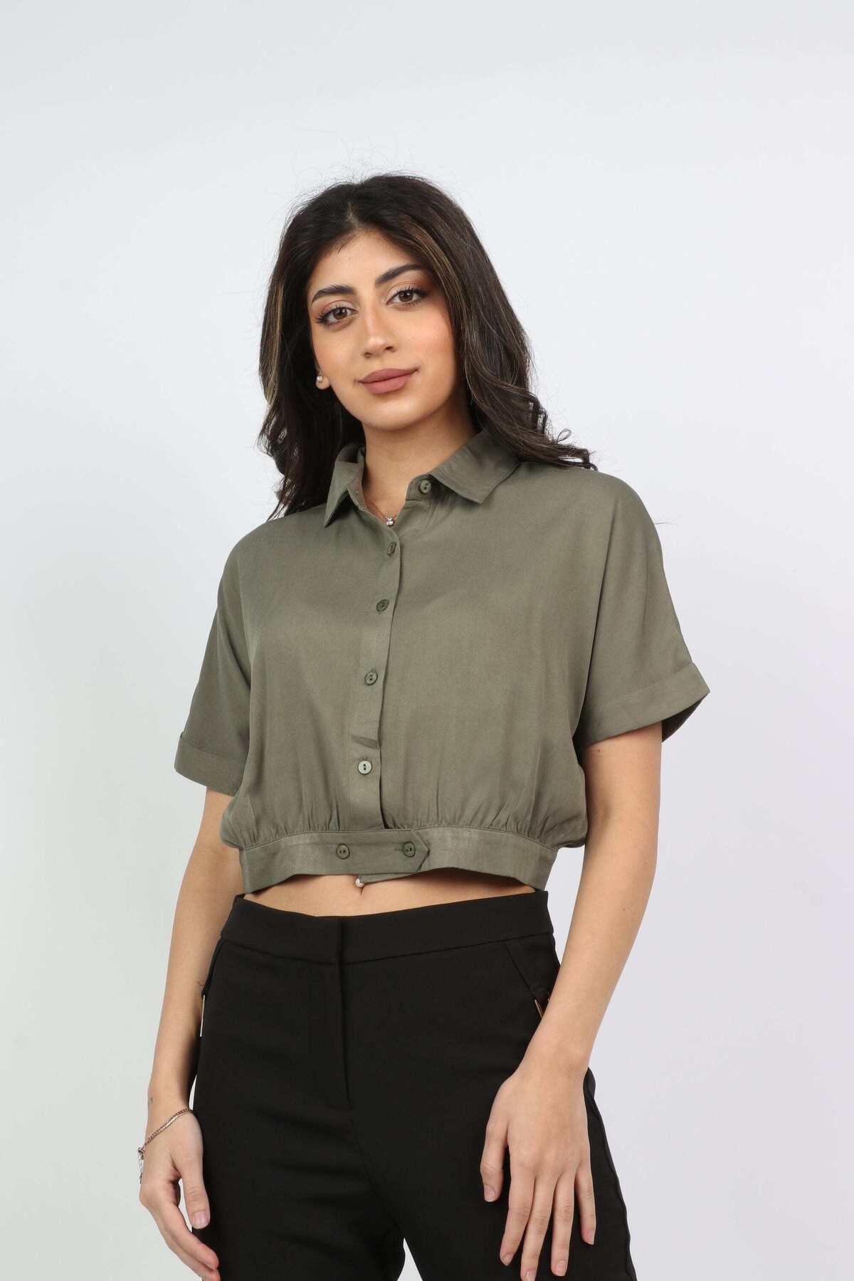 ميزات بلوزة بأكمام قصيرة وأزرار أمامية من Kitschen