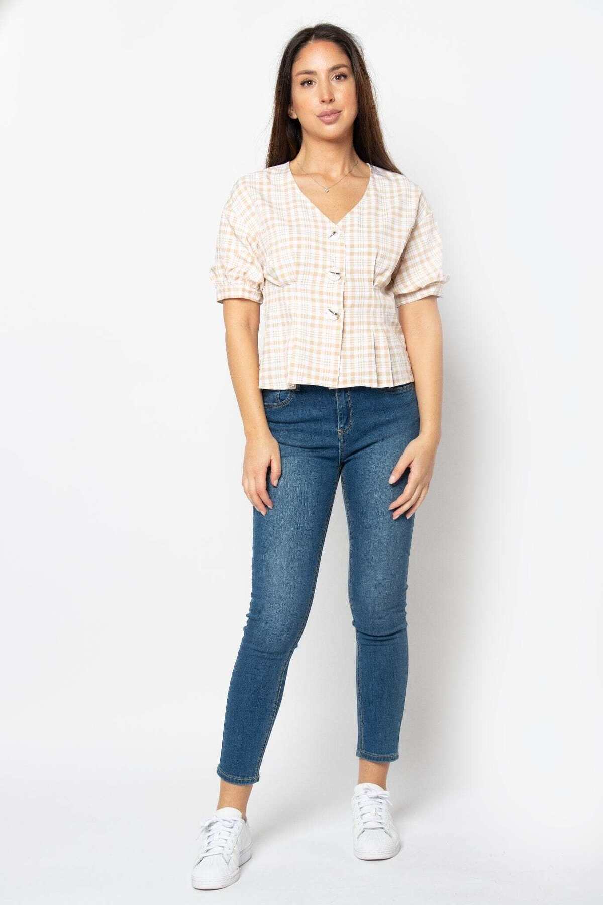 ميزات بلوزة منقوشة بأكمام قصيرة من Kitschen