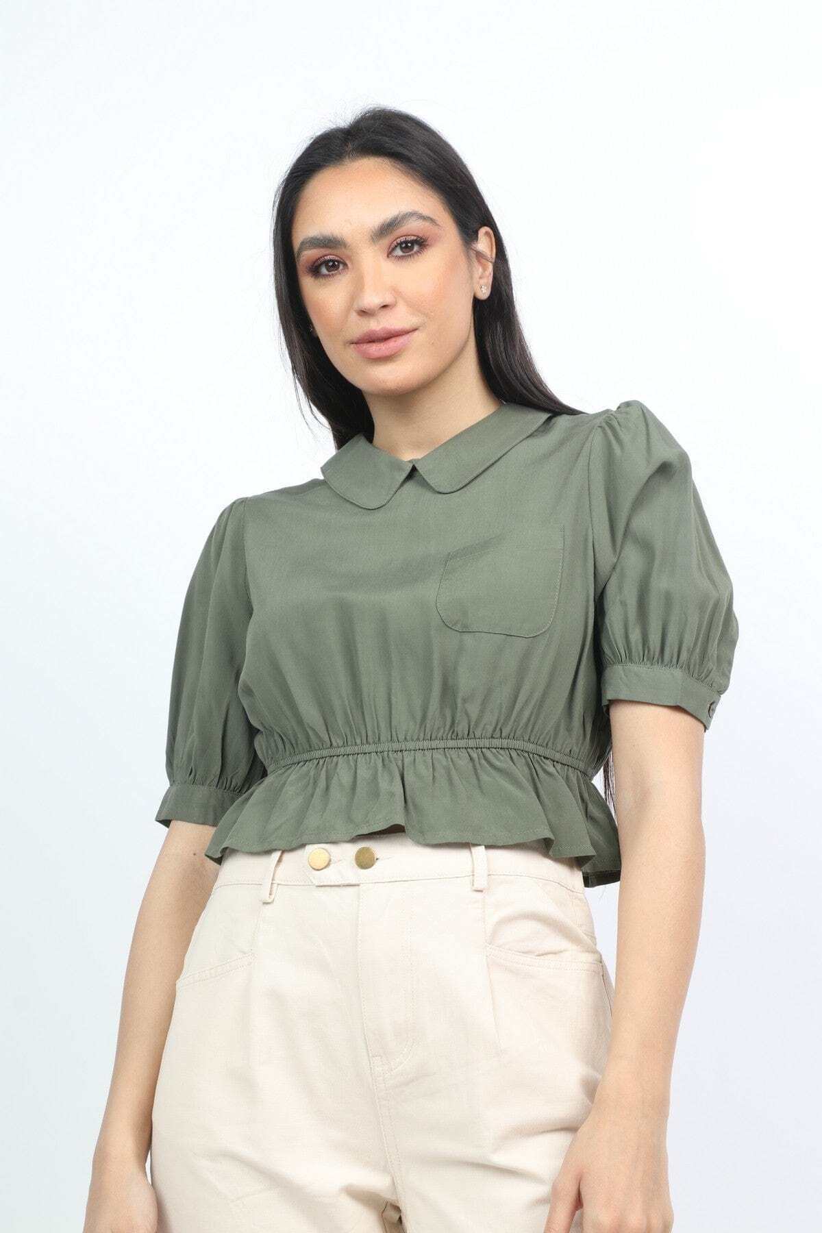 Kitschen بلوزة سادة بأكمام قصيرة وجيب