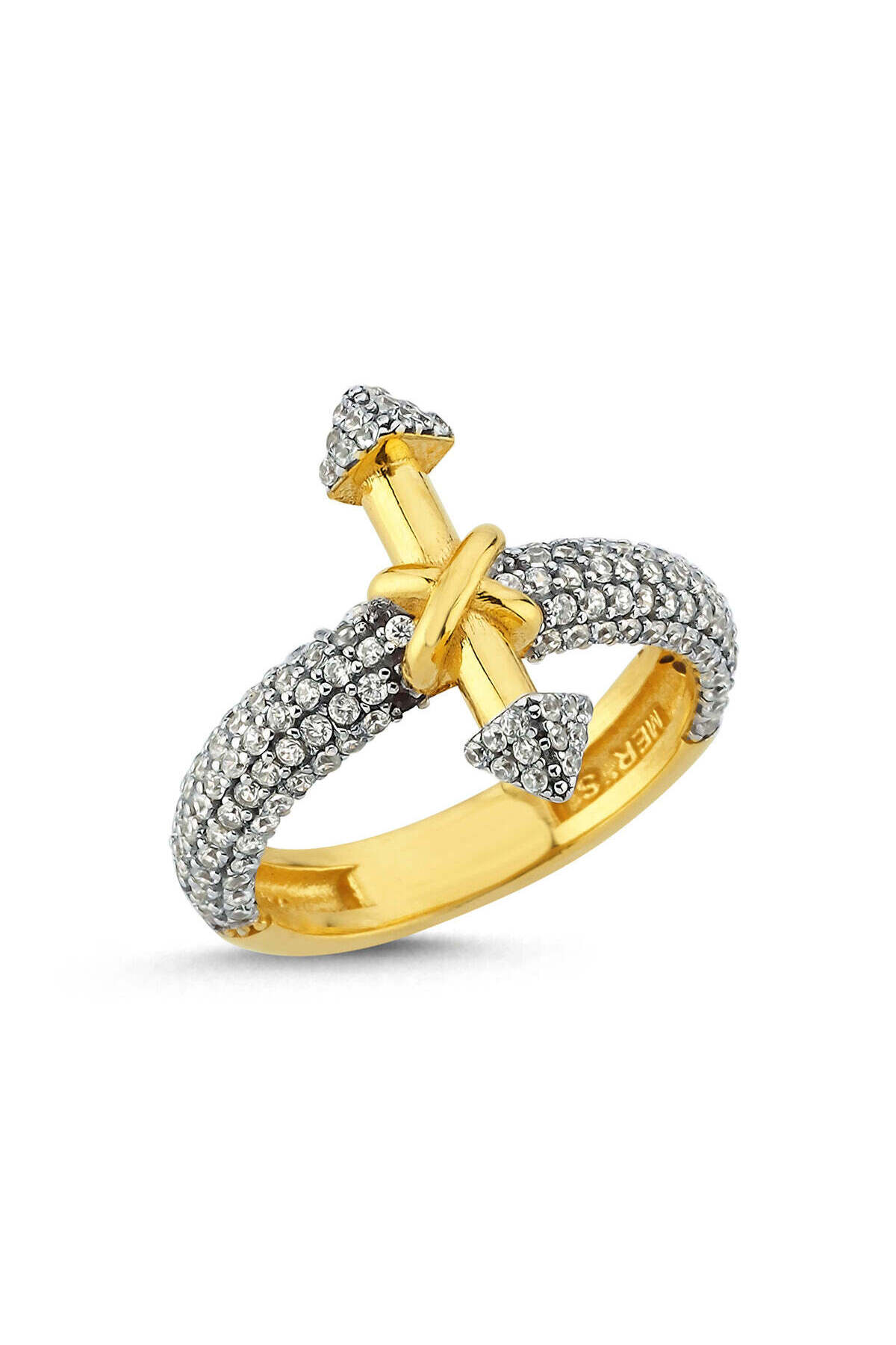 Kius خاتم ذهبي مرصع بالفضة والزركون على شكل نجمة