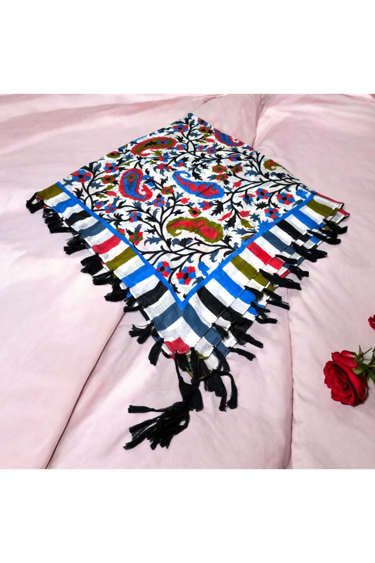 ميزات وشاح حريري أزرق من kızca
