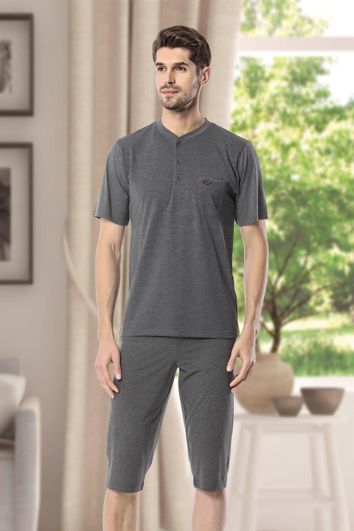 KLY طقم بيجامة قطن ليكرا منقوش بأزرار