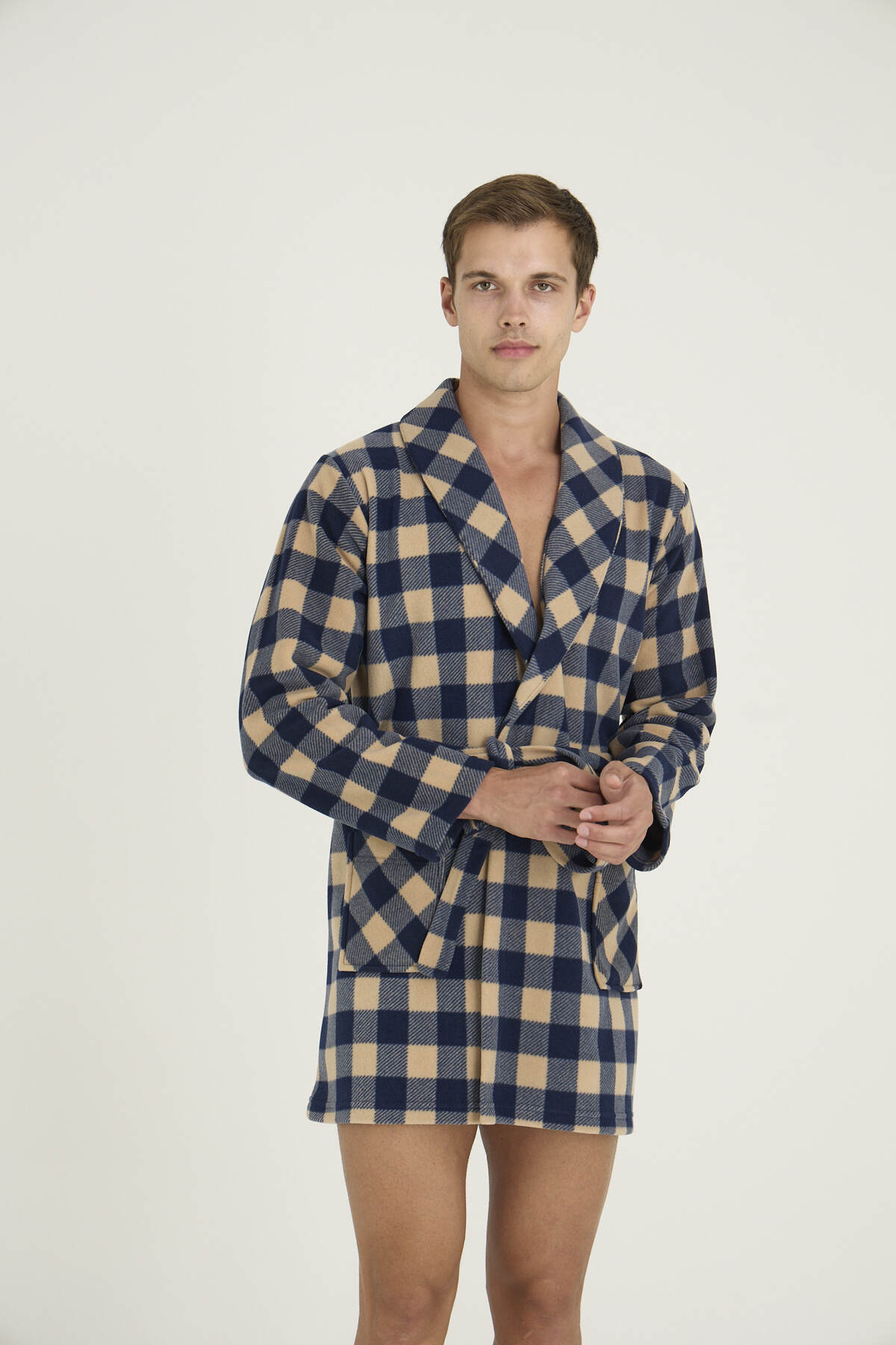 ميزات روب استحمام رجالي منقوش بنمط مربعات من KLY