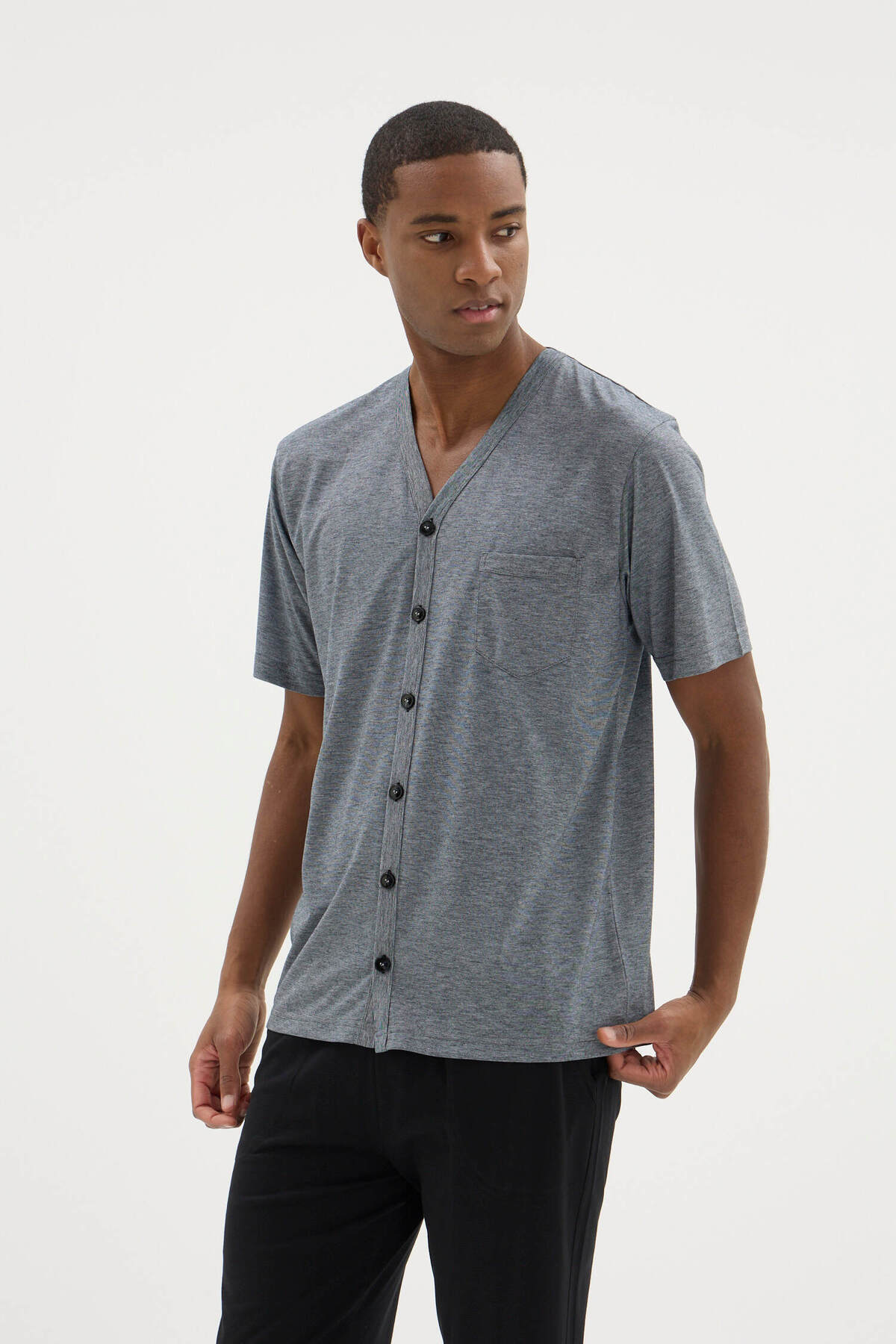 ميزات طقم بيجامة رجالي بياقة على شكل V وأزرار طويلة - ملابس خارجية من KLY