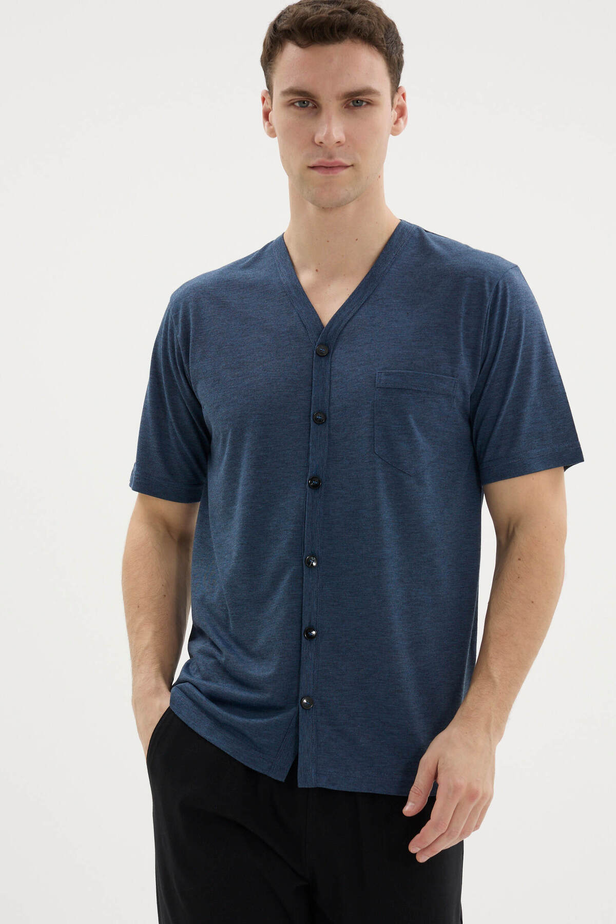 ميزات طقم بيجامة رجالي بياقة على شكل V وأزرار طويلة - ملابس خارجية من KLY