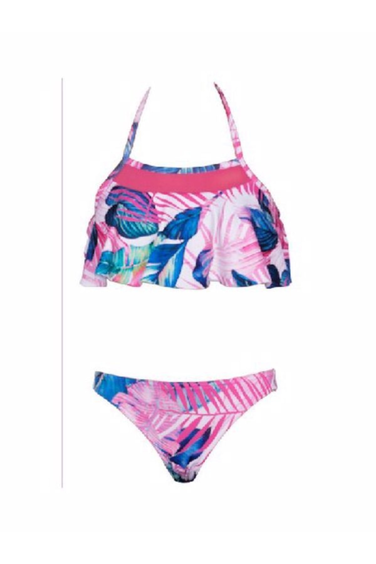 ميزات طقم بيكيني مكشكش برقبة قابلة للتعديل بنمط أوراق الشجر من Kom