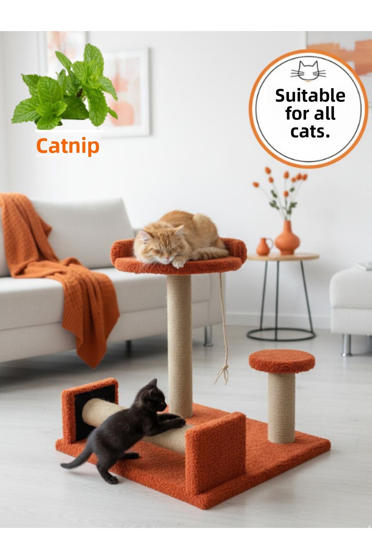 Komano Pontika منطقة لعب واسعة للقطط مع سرير دائري مناسب لجميع القطط