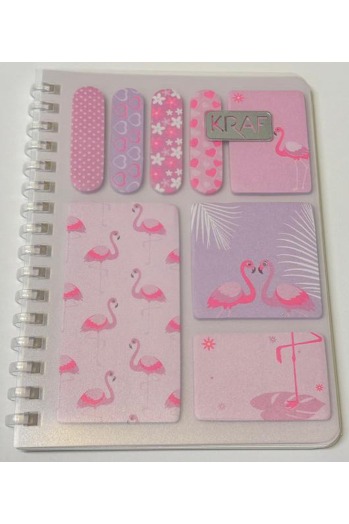 ميزات دفتر ملاحظات حلزوني A6 + فهرس (بولي بروبيلين) + مجموعة أوراق ملاحظات لاصقة بتصميم فلامنغو من KRAF