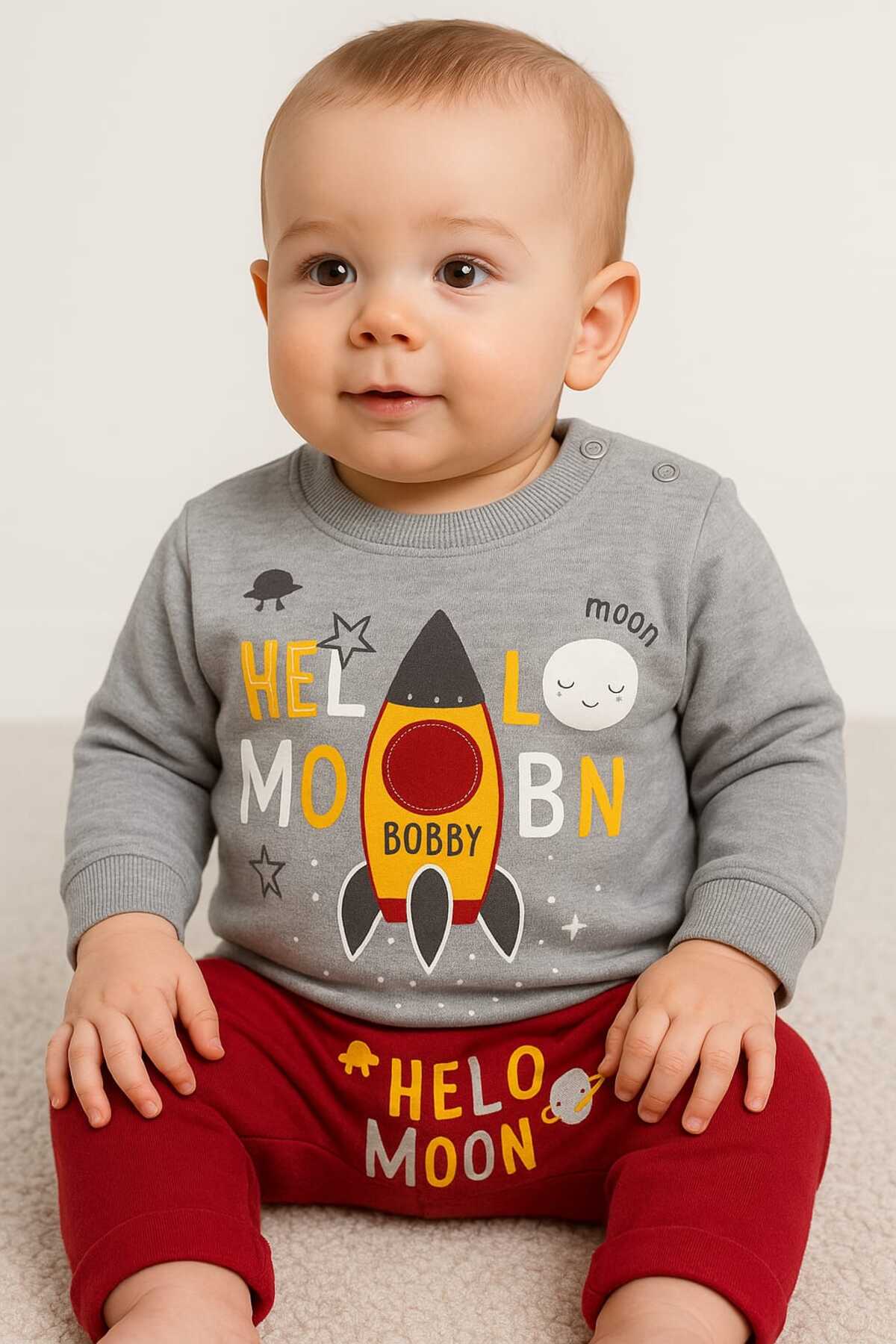 krm kerem bebe طقم مكون من قطعتين للأطفال الأولاد بنمط صاروخ