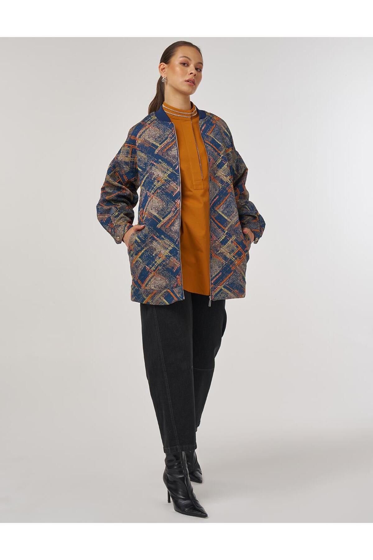 KYR سترة على شكل ياقة جامعية بنمط تجريدي على شكل يقطين