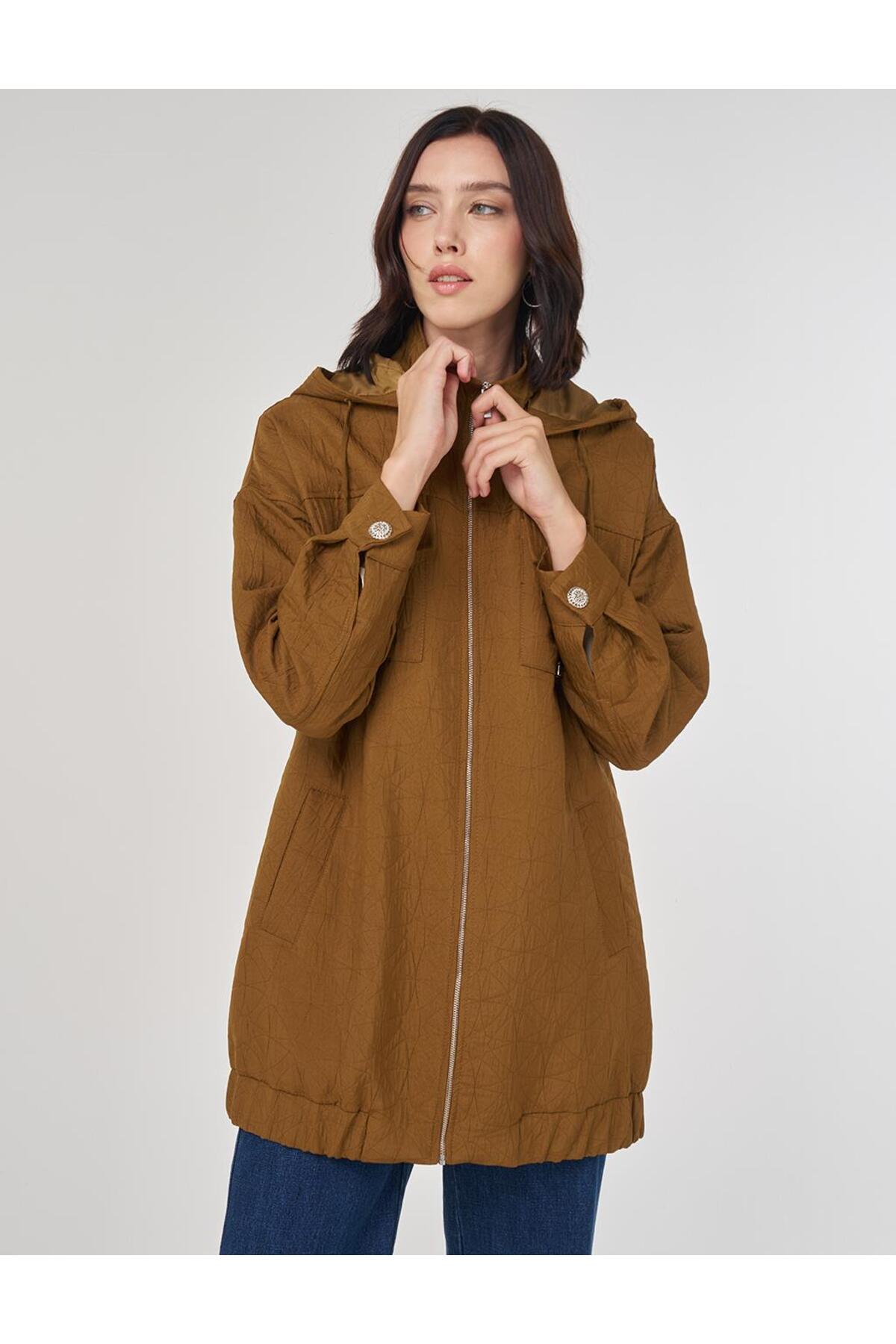 ميزات قبعة مبطنة بأزرار لامعة باللون الزيتوني الداكن من KYR