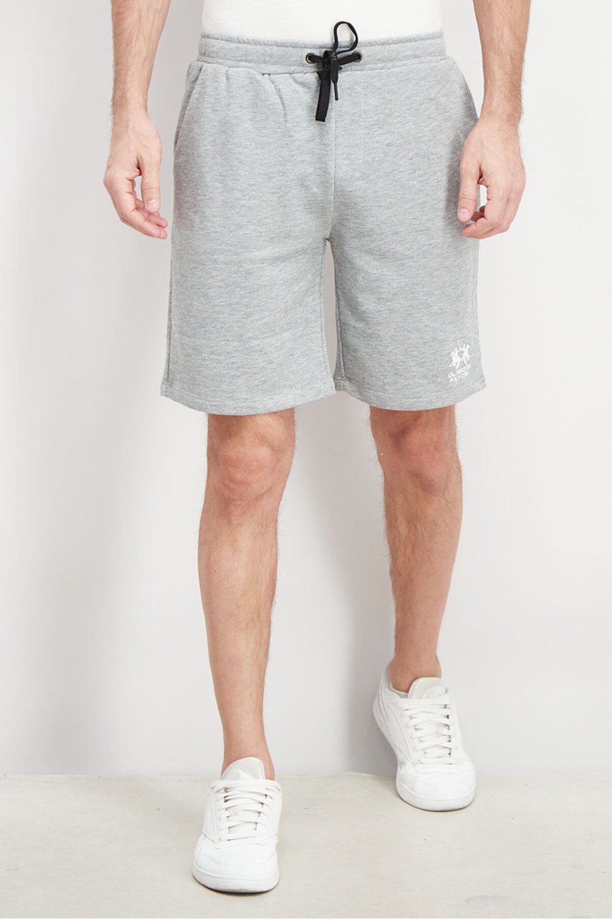 ميزات شورت رجالي أساسي برباط وشعار مطرز، رمادي باهت من La Martina