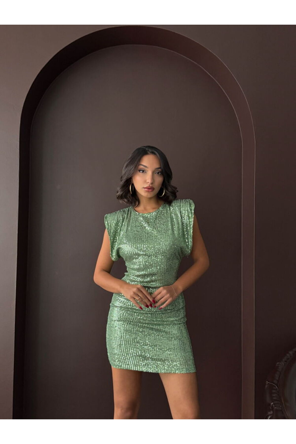 ميزات فستان سهرة قصير مطرز بالترتر اللامع ومكشوف الظهر من Lady Pixie