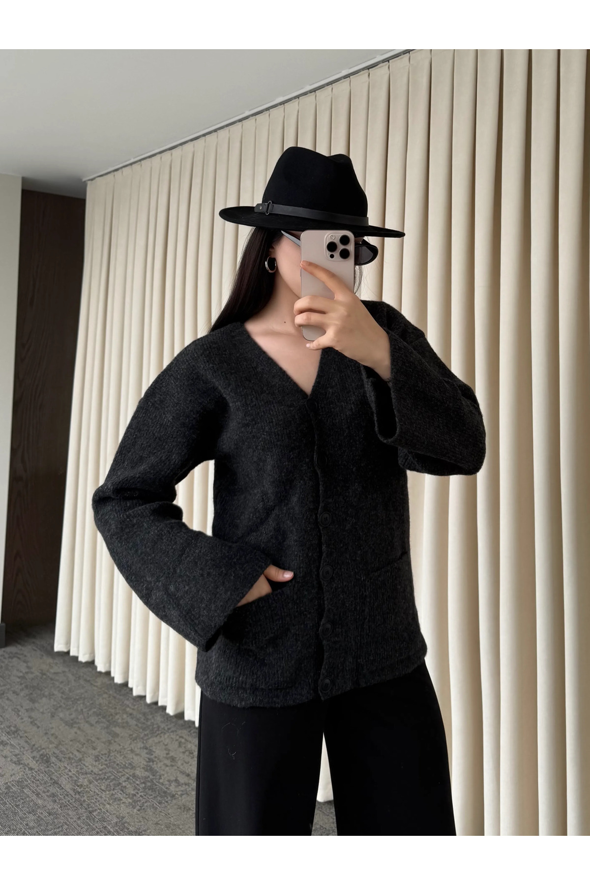 ميزات كارديجان أساسي بأزرار من أنثراسايت - 4622 من Laluvia