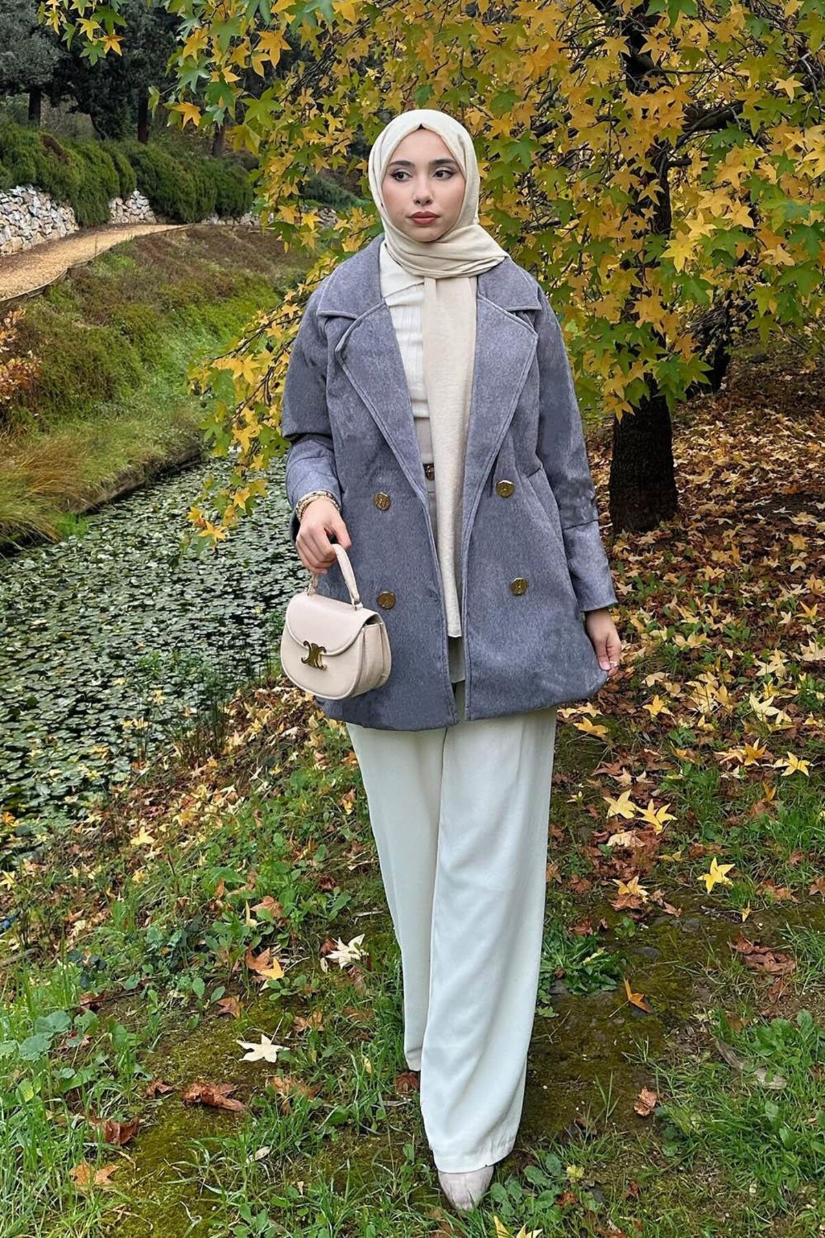 ميزات ختم معطف رمادي من lamelif