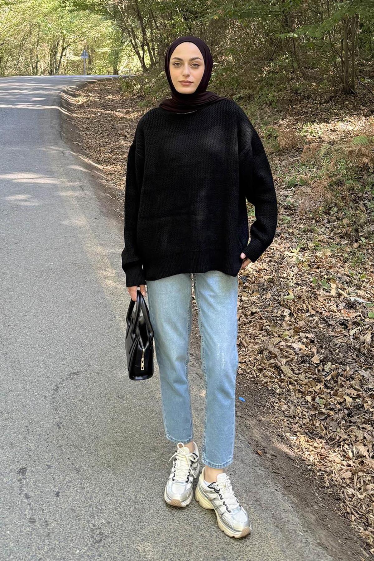 ميزات سترة محبوكة رفيعة باللون الأسود من lamelif