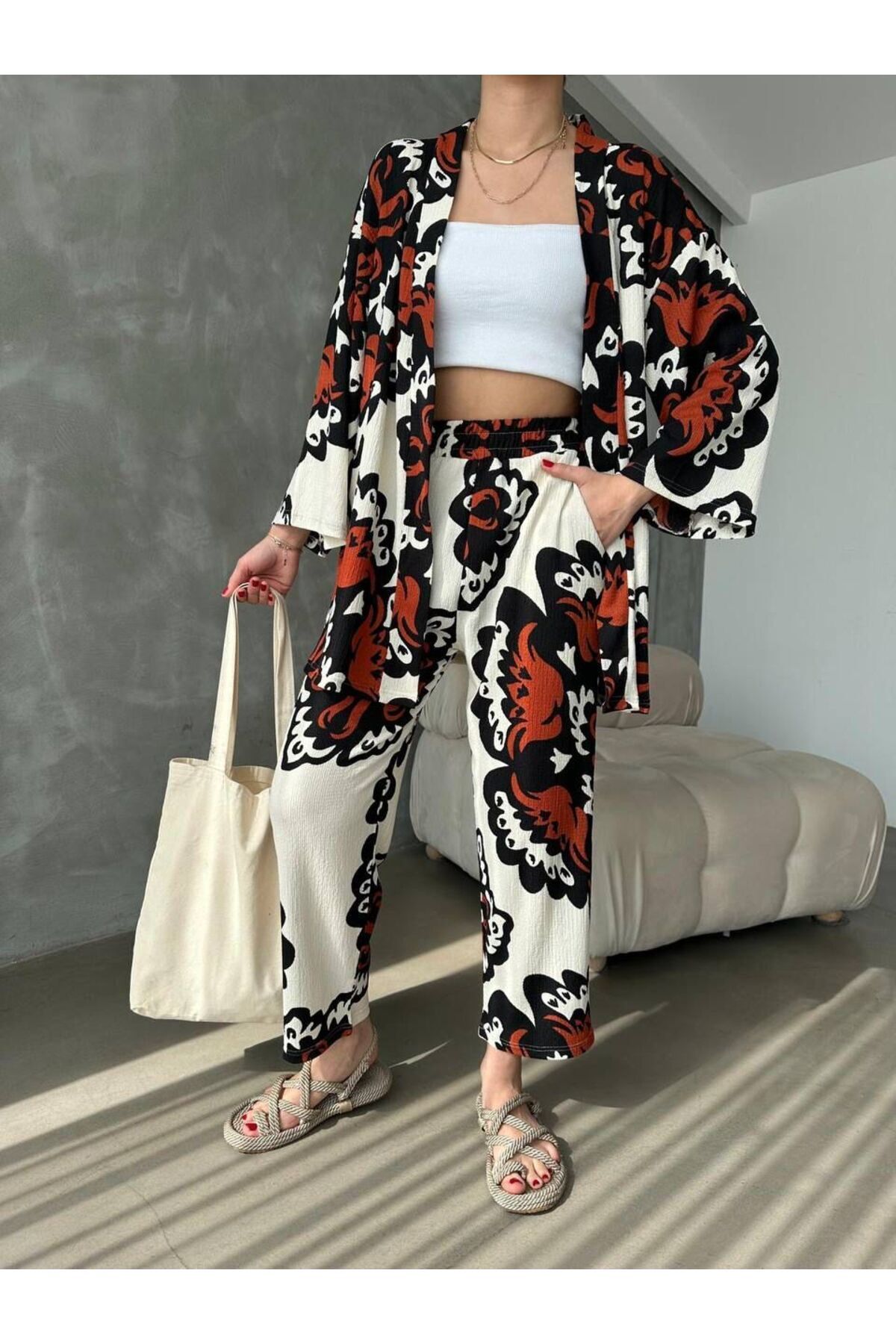 ميزات طقم كيمونو مزدوج بنمط مريح من LAMİFUSTORE
