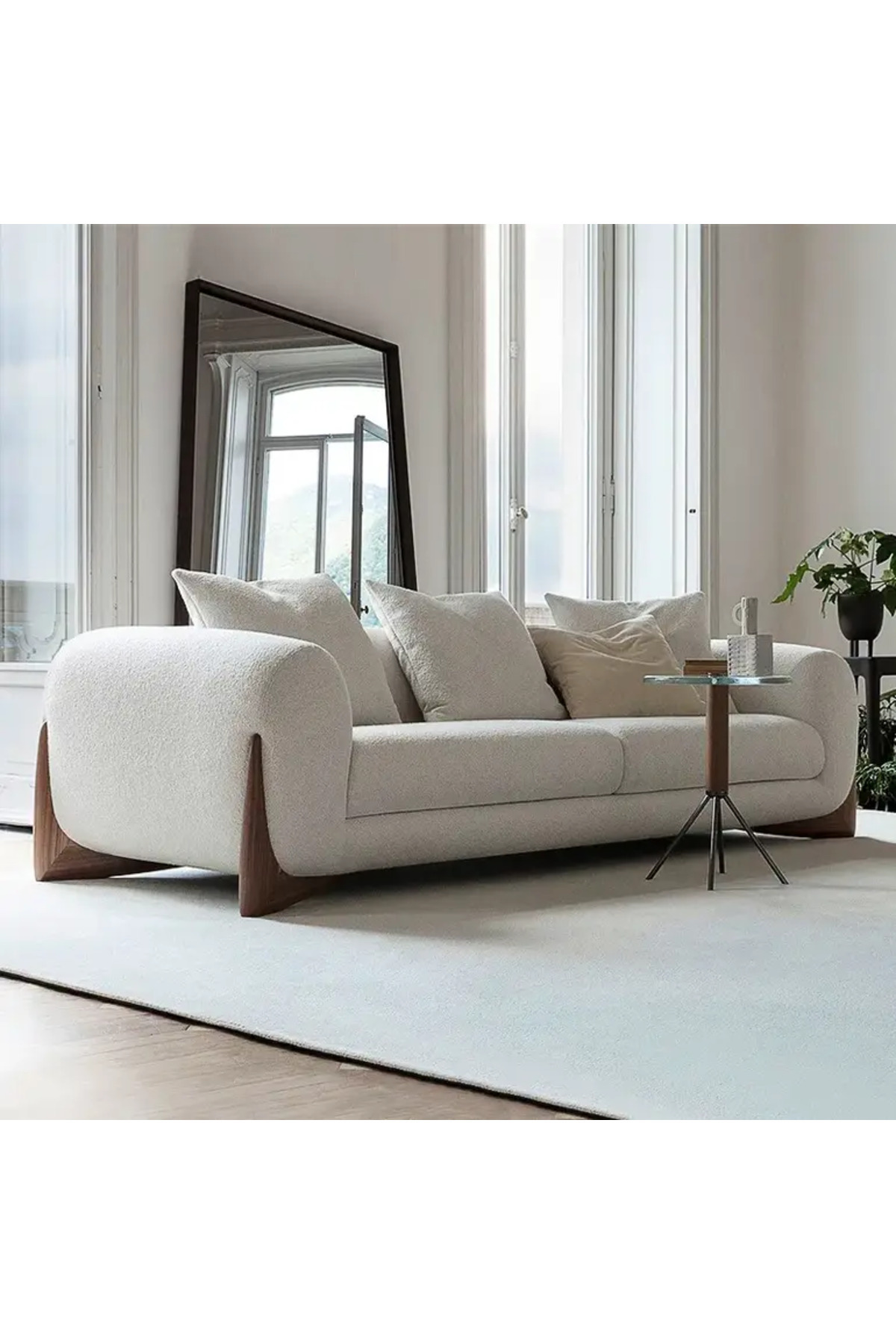 ميزات أريكة من قماش البوكليه بلون أبيض كريمي من lamsat baity