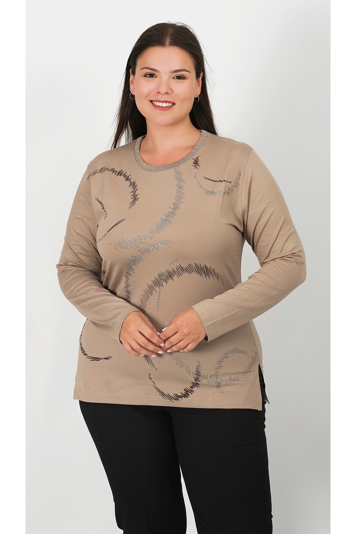 ميزات بلوزة قطن ممشط مطبوعة من Lanze