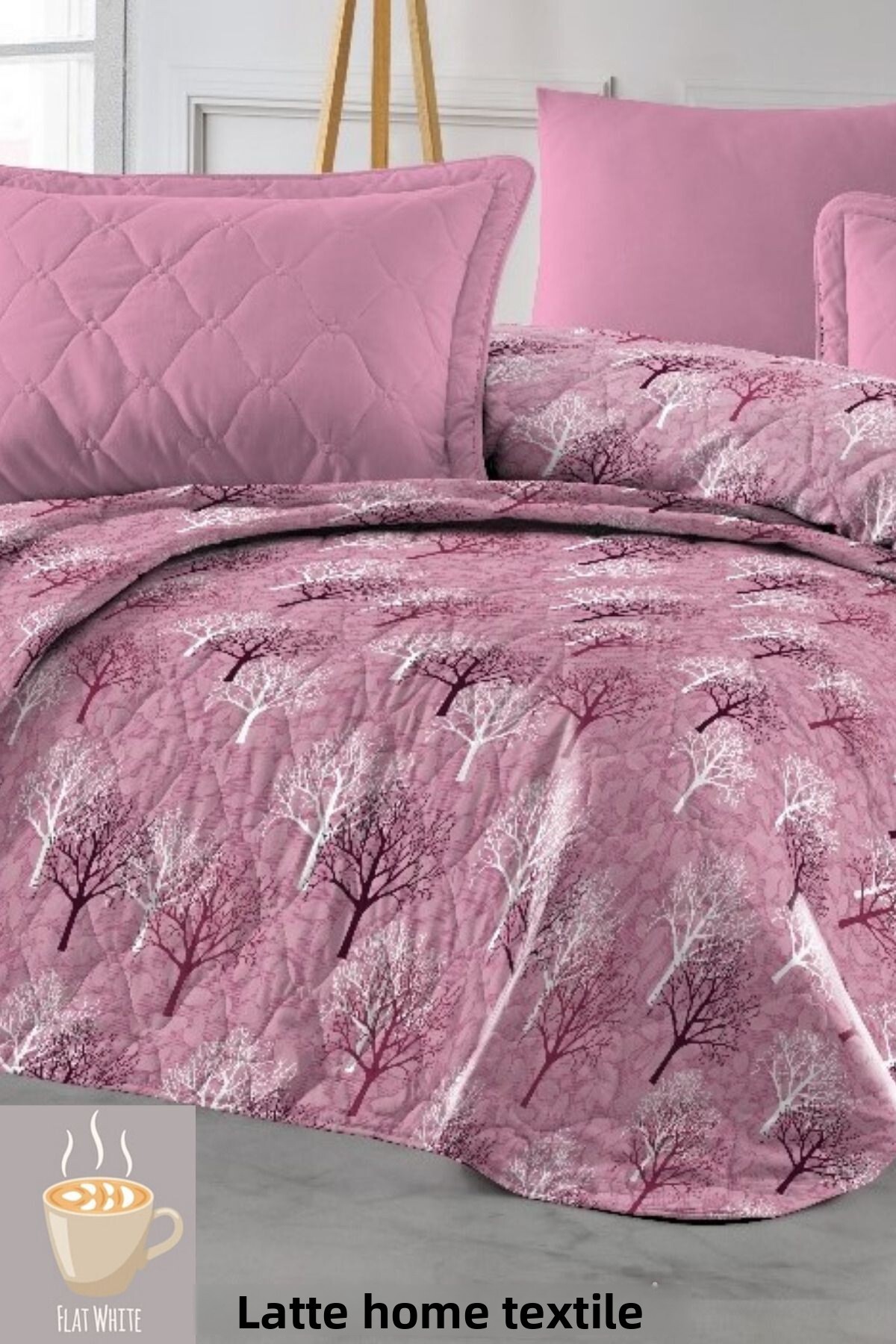 LATTE TEKSTİL مفرش سرير فردي مبطن منقوش - متعدد الأغراض، أبيض مسطح، 155x230 سم