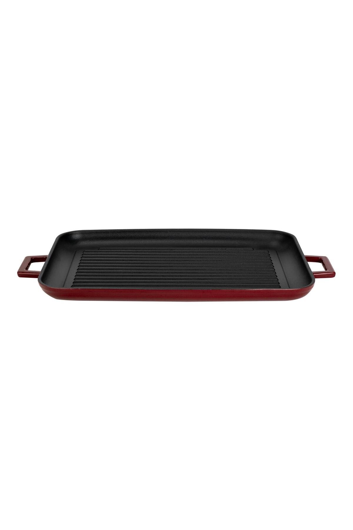 ميزات صينية شواء مستطيلة من الحديد الزهر بمقبض مزدوج مقاس 31 × 42 سم من Lava