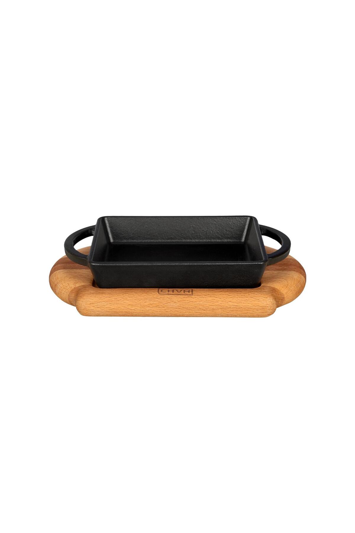 ميزات صب مستطيل من الحديد المصبوب بمقبض مزدوج من خشب الزان مقاس 12 × 15 سم من Lava