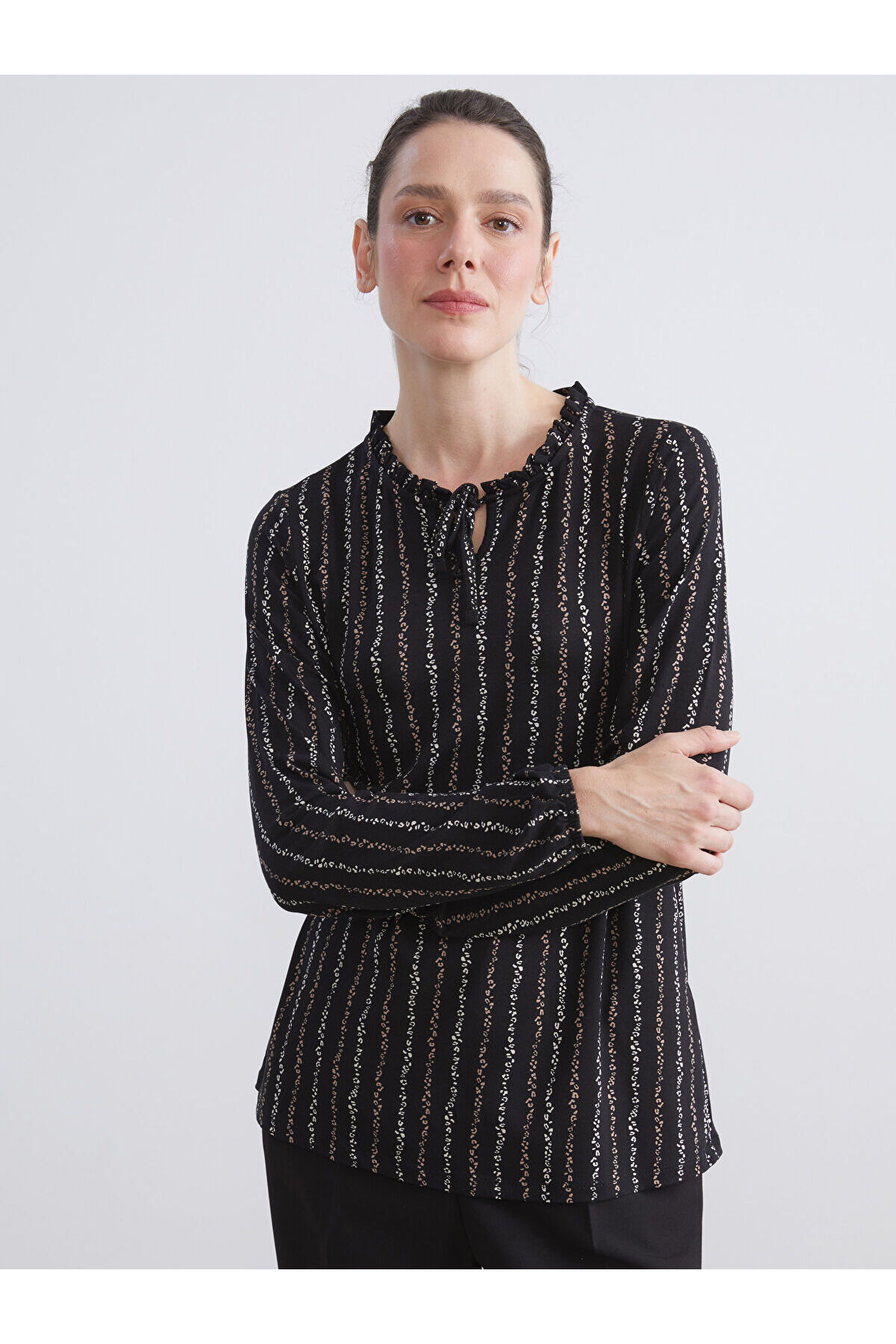 ميزات بلوزة منقوشة بياقة مربوطة من LC Waikiki