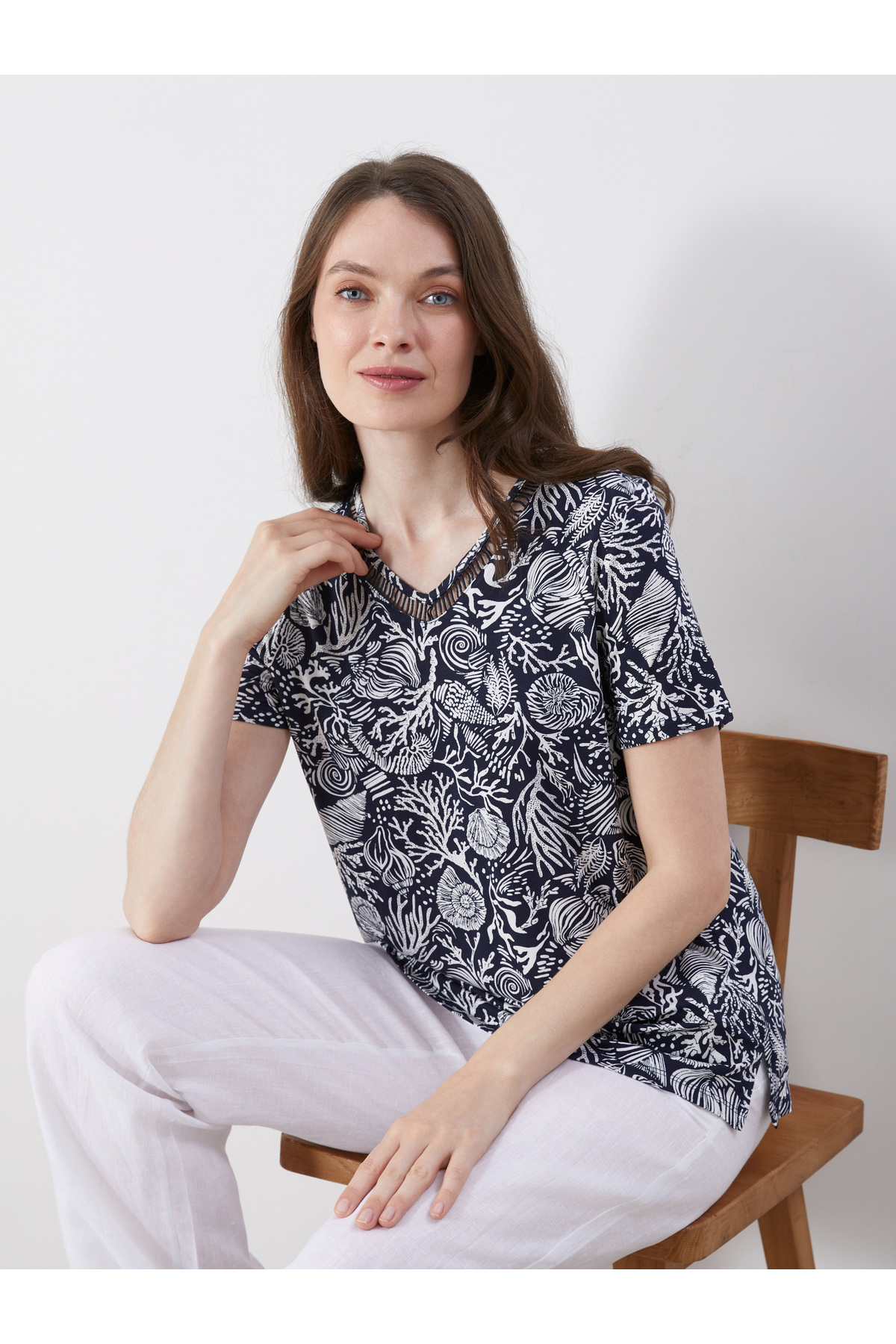 LC Waikiki بلوزة منقوشة على شكل حرف V
