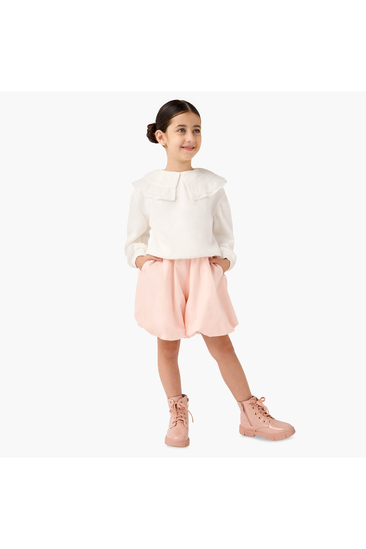 ميزات طقم مكون من بلوزة بياقة سادة وشورت واسع من Lee Cooper