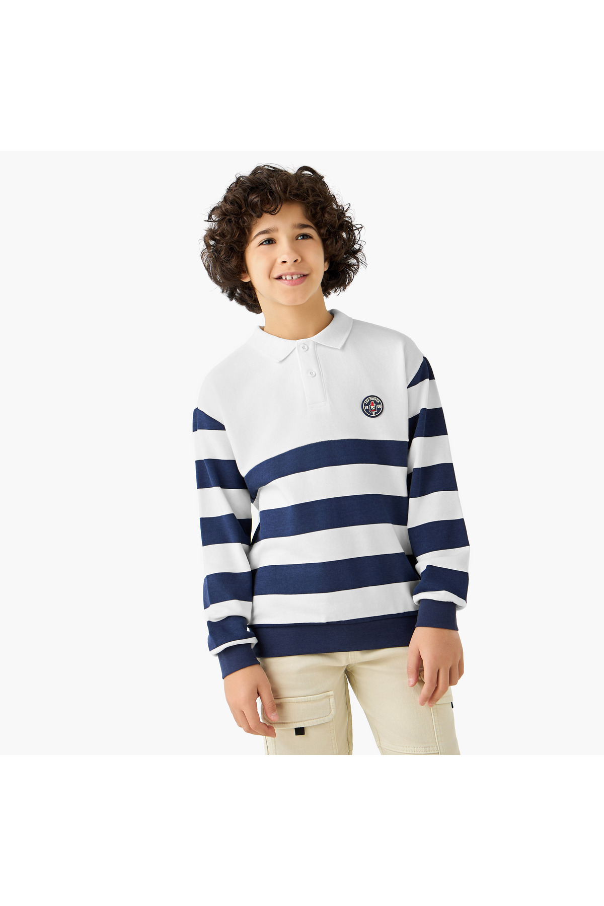 Lee Cooper كنزة مخططة بياقة وأكمام طويلة