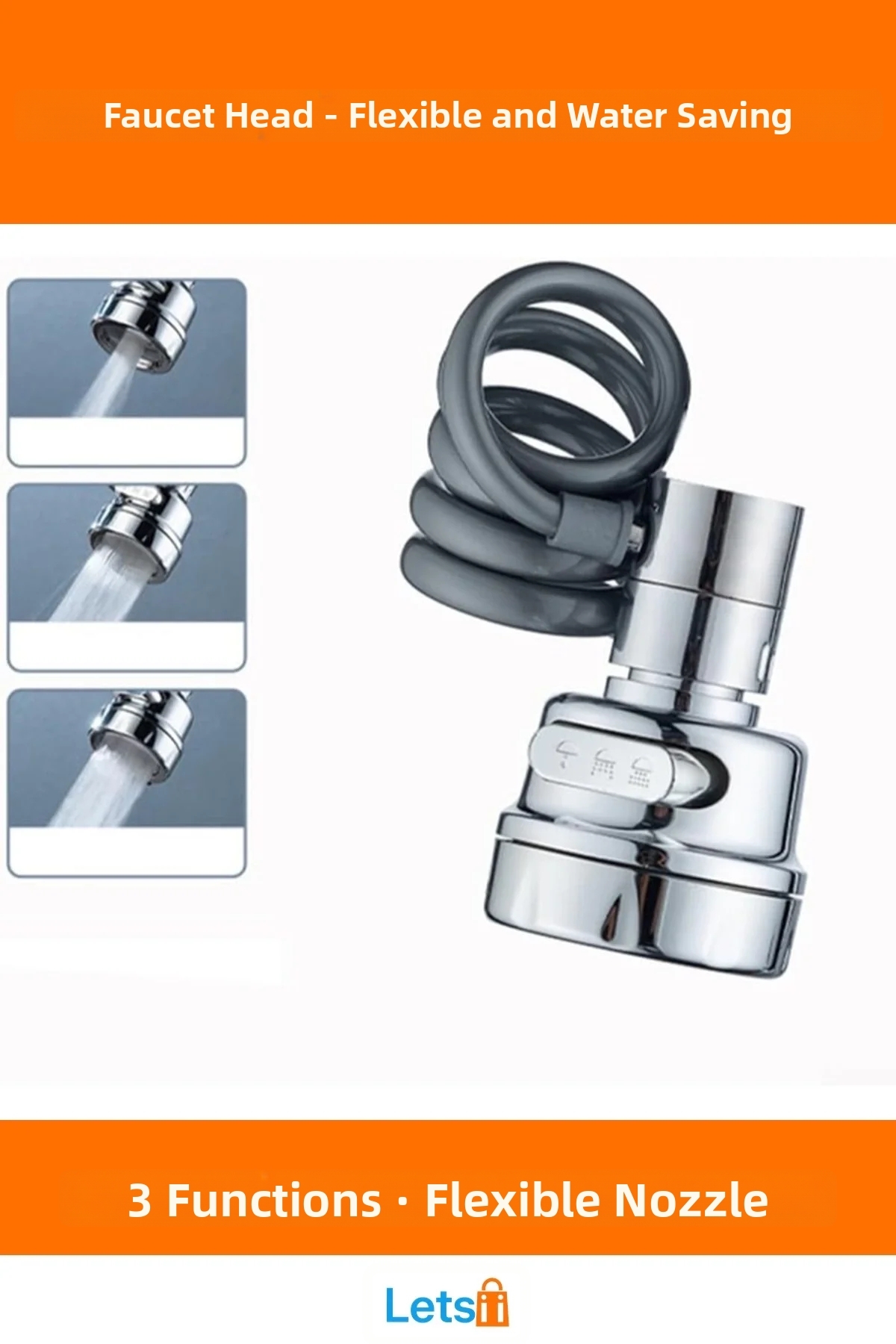 Letsii رأس صنبور من الفولاذ المقاوم للصدأ بثلاث وظائف مع خرطوم قابل للتمديد