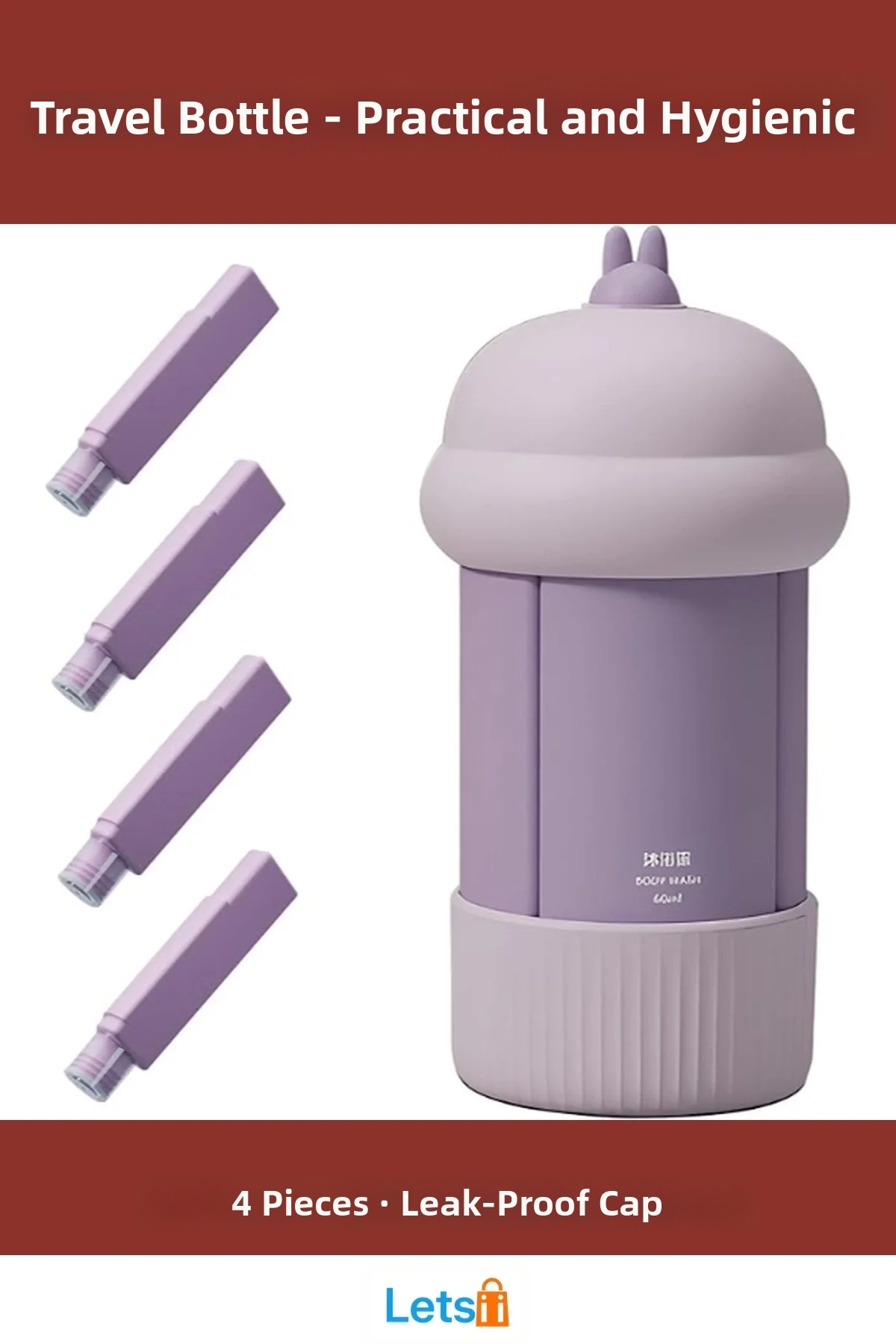 Letsii مجموعة زجاجات السفر 4 في 1 عملية وقابلة للضغط
