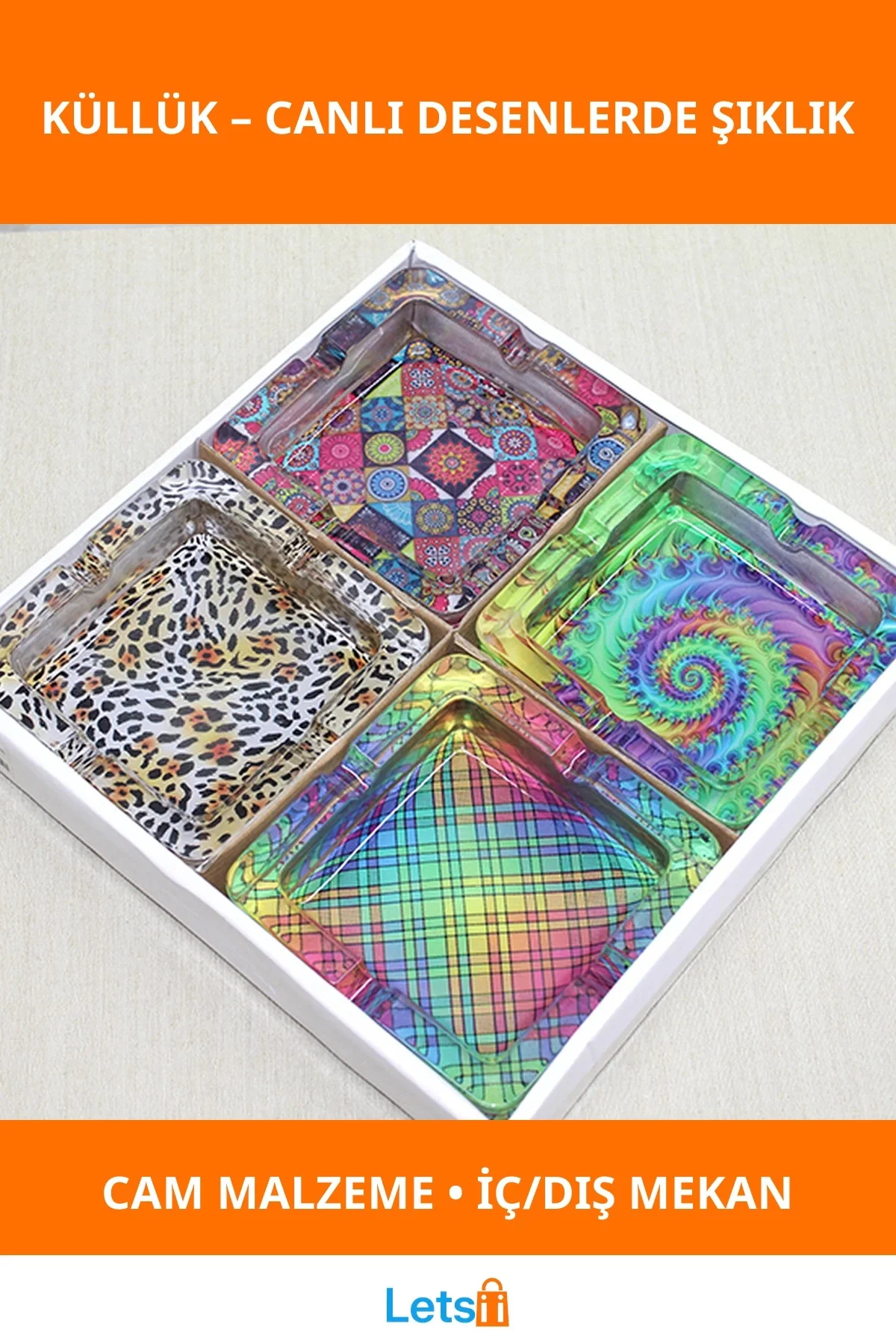 Letsii منفضة سجائر زجاجية متينة ذات نمط ملون