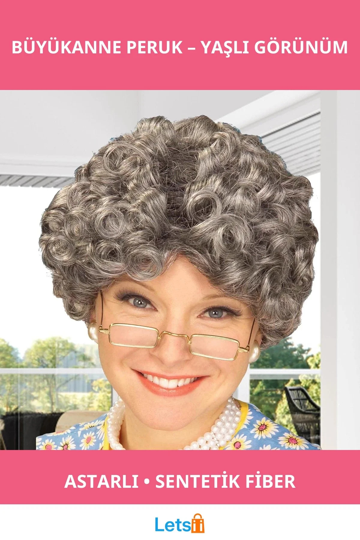 Letsii شعر مستعار رمادي مجعد بتصميم مريح ومبطّن