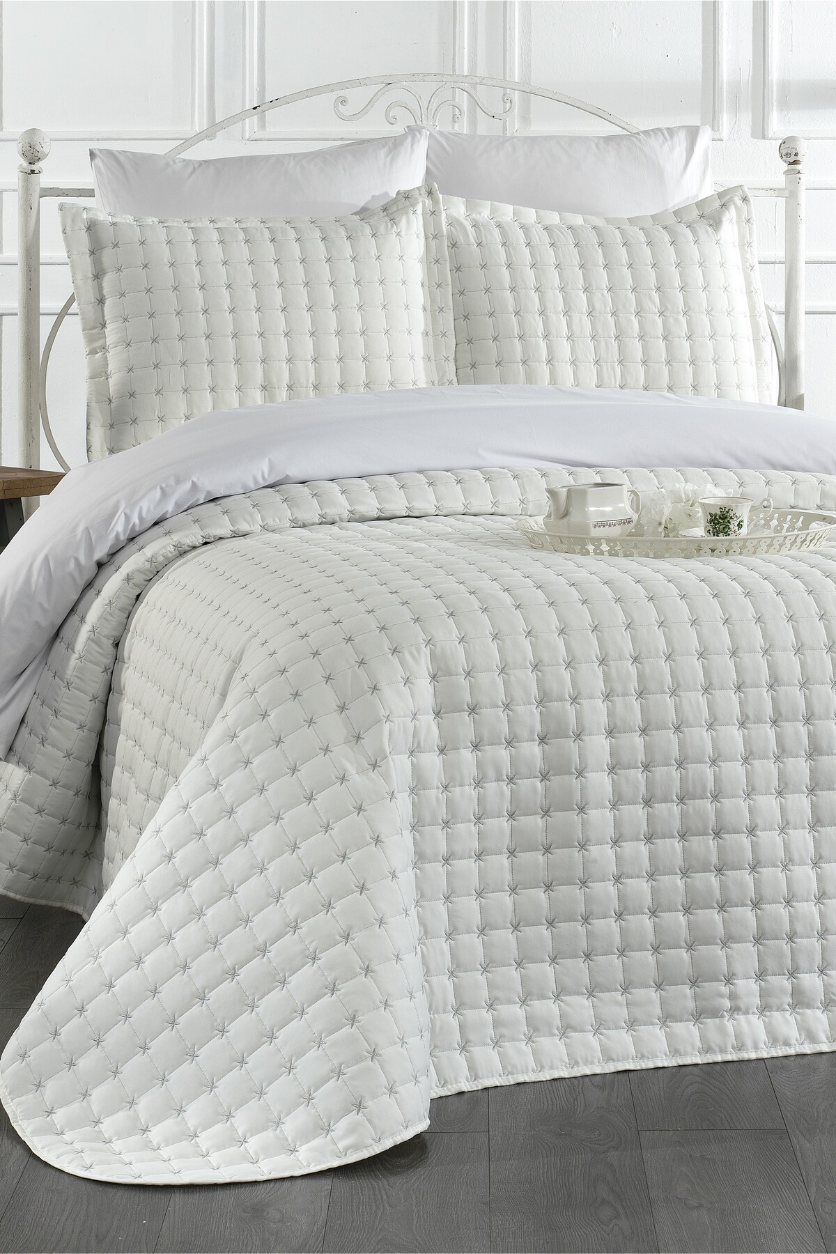 ميزات مفرش سرير مزدوج باللون الرمادي الكريمي من Levanzo